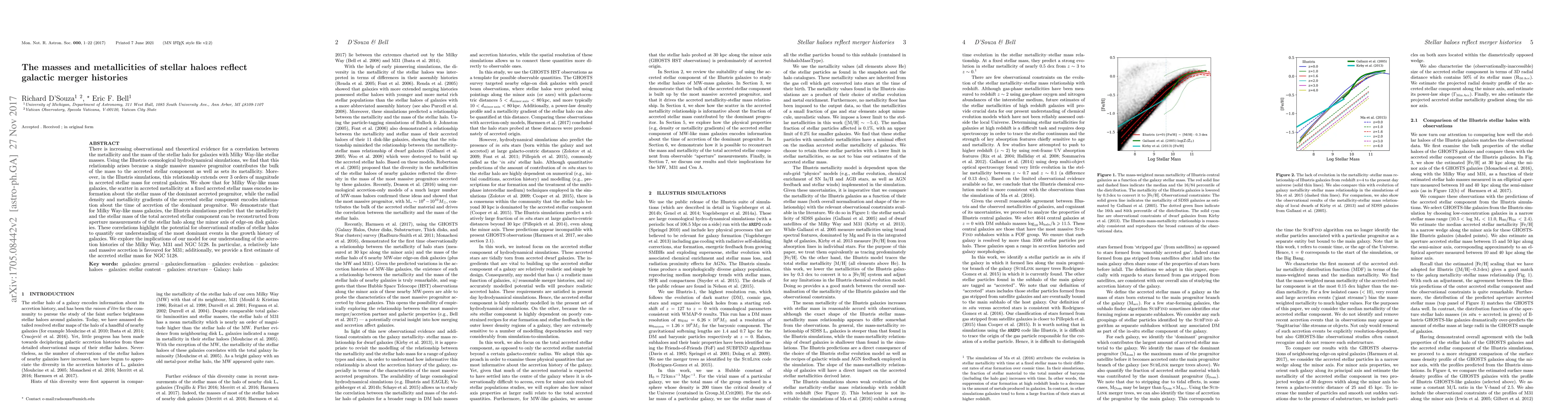 A study using simulations finds that a galaxy's stellar halo metallicity and mass are linked to its merger history, with more massive mergers leaving a larger impact on the final galaxy.