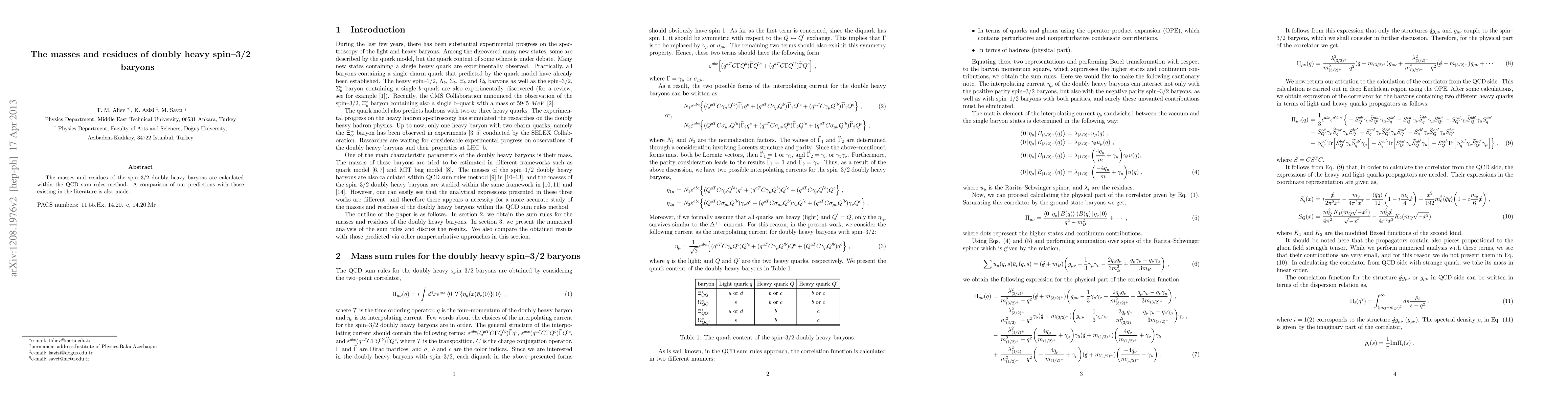 The masses and residues of the spin--3/2 doubly heavy baryons are calculated within the QCD sum rules method. A comparison of our predictions with those existing in the literature is also made.