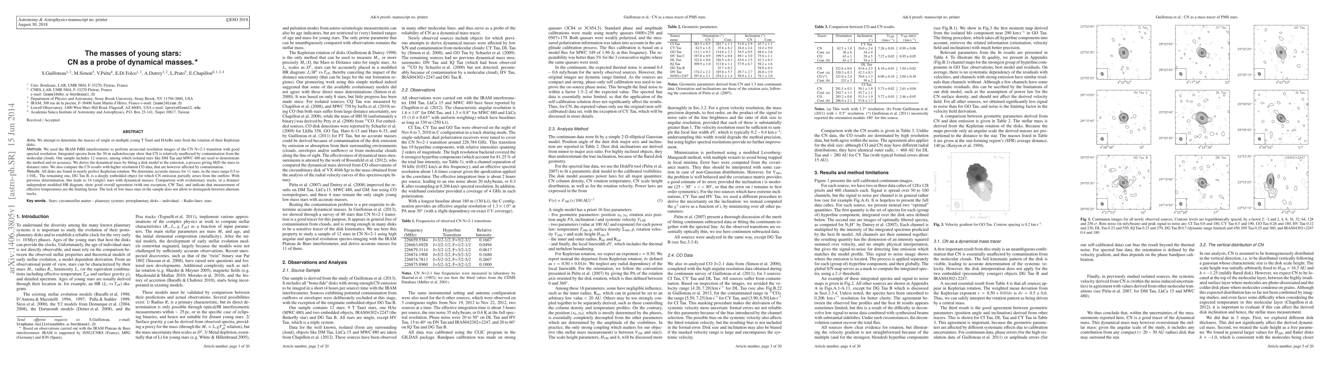 Aims: We attempt to determine the masses of single or multiple young T Tauri and HAeBe stars from the rotation of their Keplerian disks. Methods:We used the IRAM PdBI interferometer to perform arcsecond resolution images of the CN N=2-1 transition with good spectral resolution. Integrated spectra from the 30-m radiotelescope show that CN is relatively unaffected by contamination from the molecular clouds. Our sample includes 12 sources, among which isolated stars like DM Tau and MWC 480 are used to demonstrate the method and its accuracy. We derive the dynamical mass by fitting a disk model to the emission, a process giving M/D the mass to distance ratio. We also compare the CN results with higher resolution CO data, that are however affected by contamination. Results: All disks are found in nearly perfect Keplerian rotation. We determine accurate masses for 11 stars, in the mass range 0.5 to 1.9 solar masses. The remaining one, DG Tau B, is a deeply embedded object for which CN emission partially arises from the outflow. With previous determination, this leads to 14 (single) stars with dynamical masses. Comparison with evolutionary tracks, in a distance independent modified HR diagram, show good overall agreement (with one exception, CW Tau), and indicate that measurement of effective temperatures are the limiting factor. The lack of low mass stars in the sample does not allow to distinguish between alternate tracks.