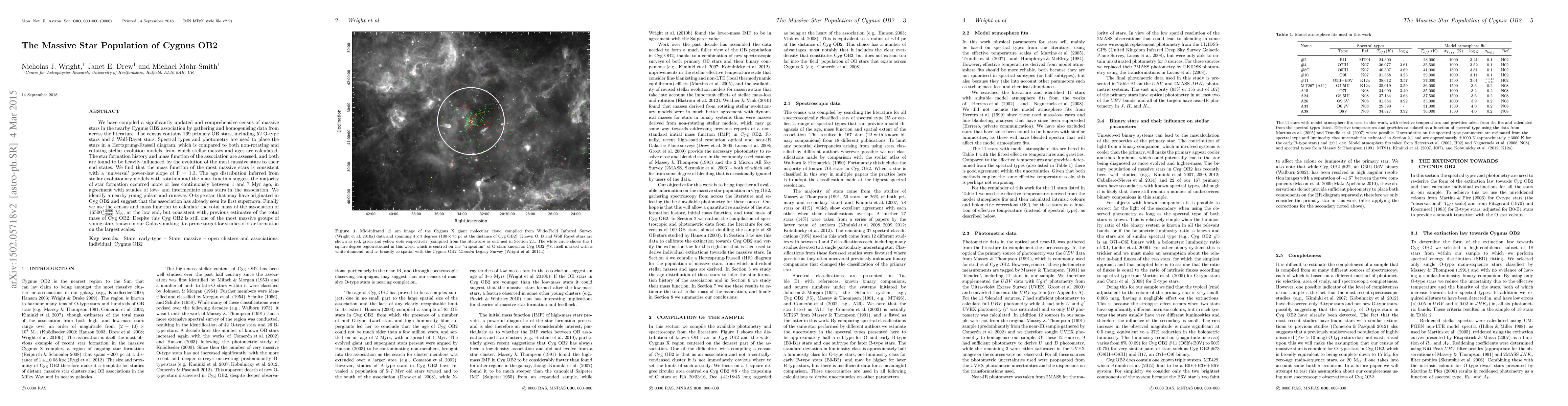 We have compiled a significantly updated and comprehensive census of massive stars in the nearby Cygnus OB2 association by gathering and homogenising data from across the literature. The census contains 169 primary OB stars, including 52 O-type stars and 3 Wolf-Rayet stars. Spectral types and photometry are used to place the stars in a Hertzprung-Russell diagram, which is compared to both non-rotating and rotating stellar evolution models, from which stellar masses and ages are calculated. The star formation history and mass function of the association are assessed, and both are found to be heavily influenced by the evolution of the most massive stars to their end states. We find that the mass function of the most massive stars is consistent with a `universal' power-law slope of Gamma = 1.3. The age distribution inferred from stellar evolutionary models with rotation and the mass function suggest the majority of star formation occurred more or less continuously between 1 and 7 Myr ago, in agreement with studies of low- and intermediate mass stars in the association. We identify a nearby young pulsar and runaway O-type star that may have originated in Cyg OB2 and suggest that the association has already seen its first supernova. Finally we use the census and mass function to calculate the total mass of the association of 16500^+3800_-2800 Msun, at the low end, but consistent with, previous estimates of the total mass of Cyg OB2. Despite this Cyg OB2 is still one of the most massive groups of young stars known in our Galaxy making it a prime target for studies of star formation on the largest scales.