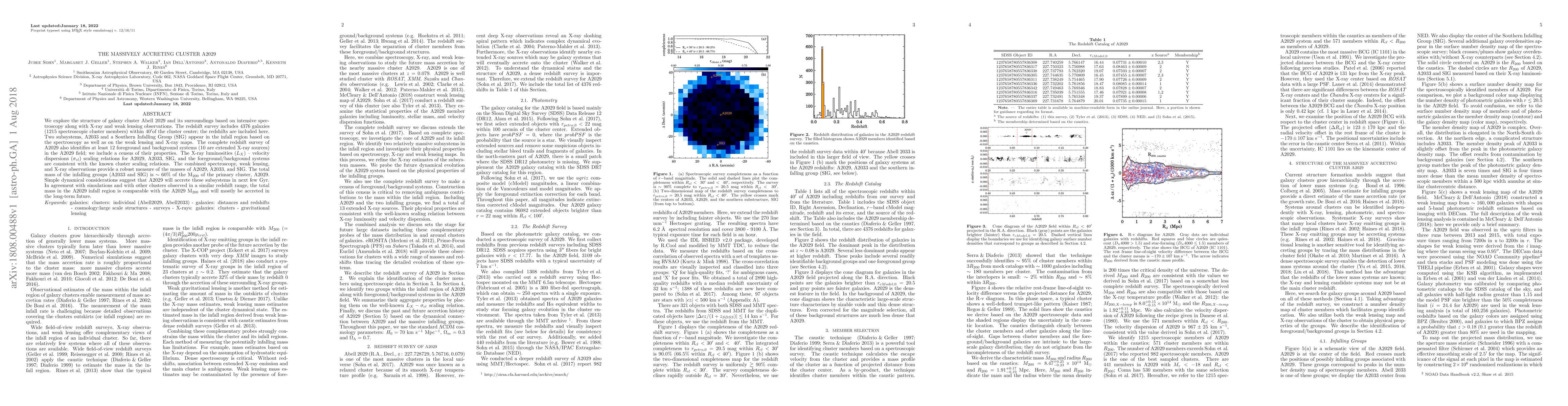 The research paper explores galaxy cluster Abell 2029 and its surroundings, revealing two infall groups that will accrete the primary cluster in the near future. The study uses intensive spectroscopy, X-ray, and weak lensing observations to measure the masses of the clusters and subsystems.