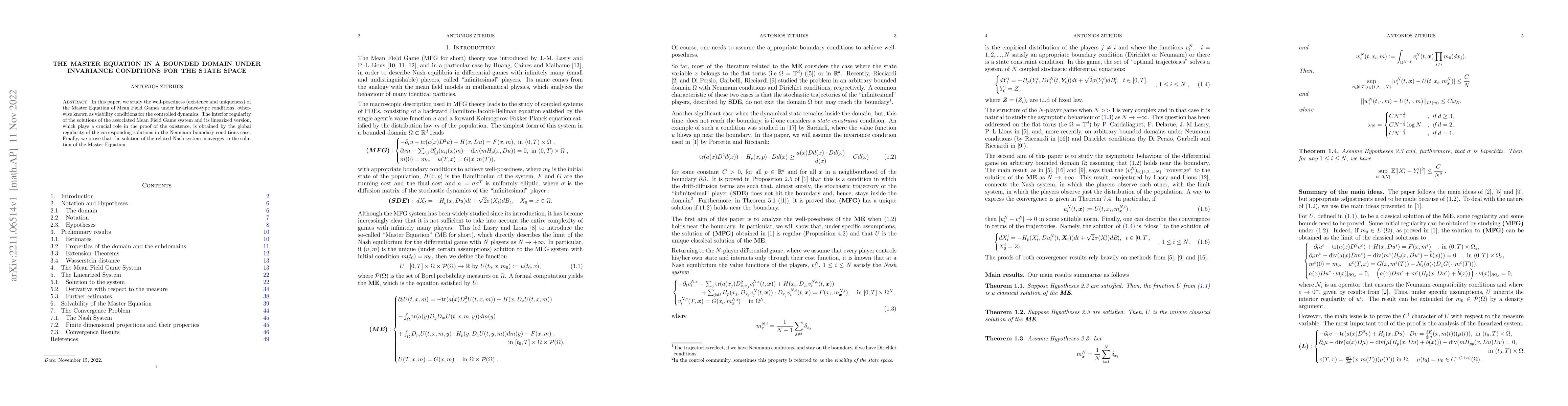 This paper investigates the existence and uniqueness of solutions to the Master Equation of Mean Field Games under invariance conditions, proving interior regularity through global regularity under Neumann boundary conditions. It also demonstrates the convergence of the Nash system solution to the Master Equation solution.