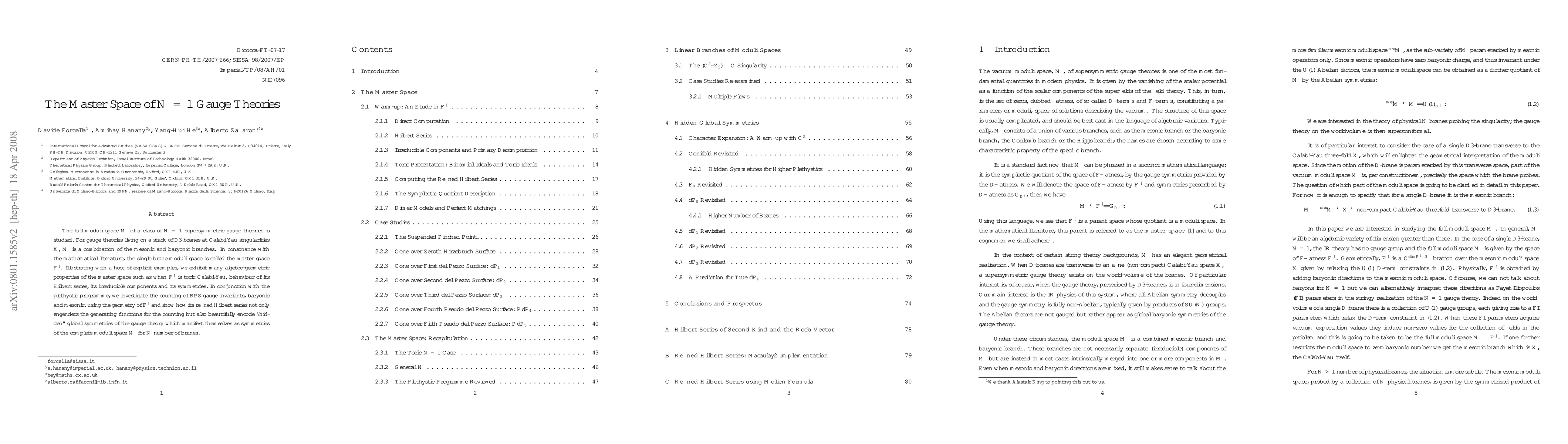 This paper studies the moduli space M of N=1 supersymmetric gauge theories on D3-branes at Calabi-Yau singularities, identifying it as a combination of mesonic and baryonic branches. It illustrates various algebro-geometric properties of the master space F, including its toric Calabi-Yau nature and symmetries, and uses its refined Hilbert series to count BPS gauge invariants and reveal hidden global symmetries.