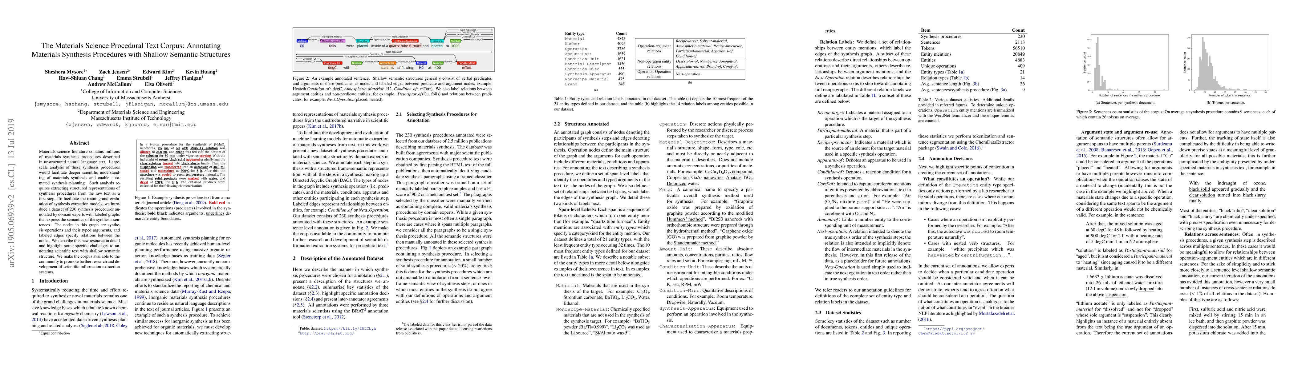 This paper introduces a dataset of 230 materials synthesis procedures annotated with shallow semantic structures, aiming to facilitate scientific understanding and automated synthesis planning. The corpus includes labeled graphs representing synthesis operations and their relations, and is made available to advance scientific information extraction research.