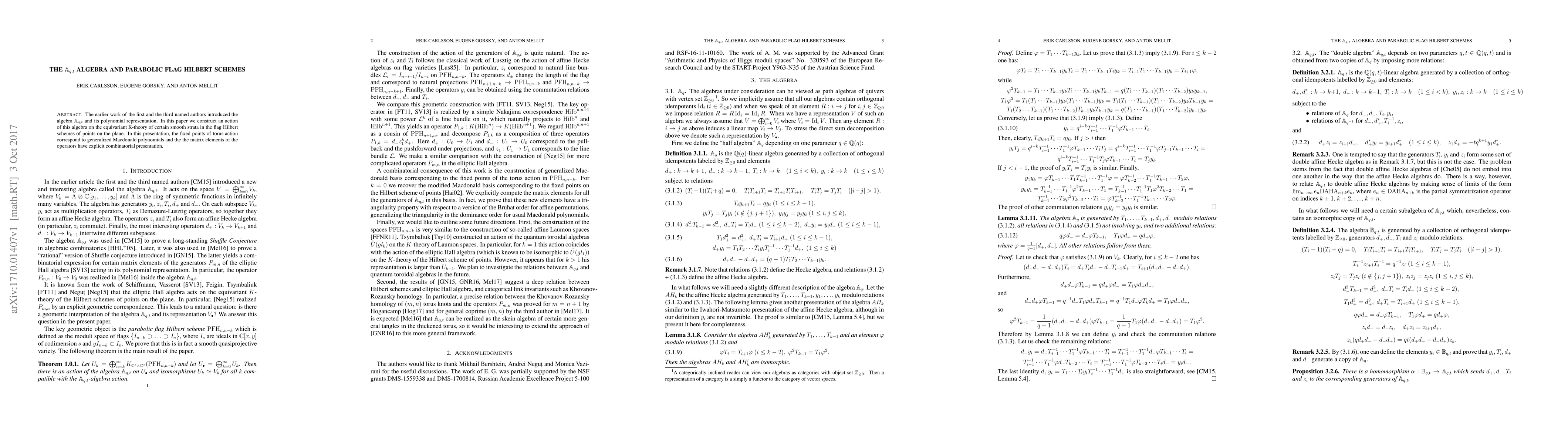 The earlier work of the first and the third named authors introduced the algebra $\mathbb{A}_{q,t}$ and its polynomial representation. In this paper we construct an action of this algebra on the equivariant K-theory of certain smooth strata in the flag Hilbert schemes of points on the plane. In this presentation, the fixed points of torus action correspond to generalized Macdonald polynomials and the the matrix elements of the operators have explicit combinatorial presentation.