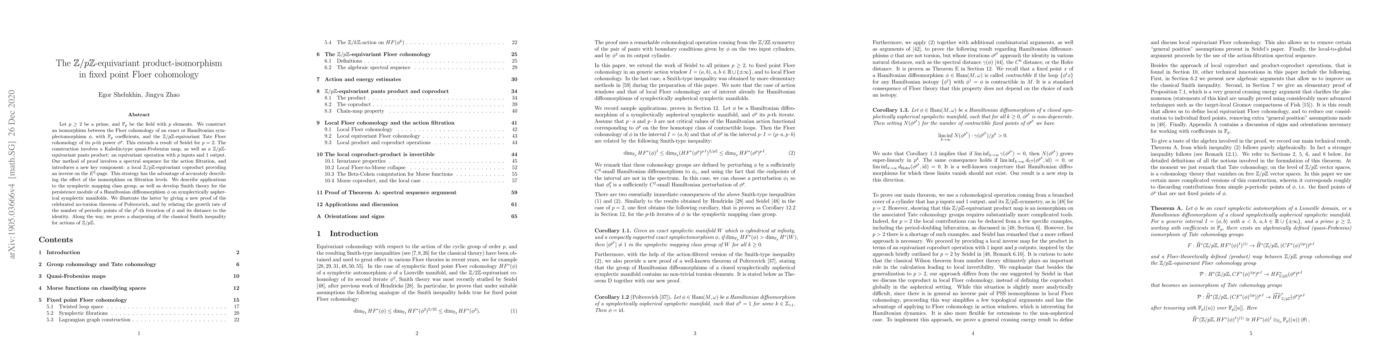 This paper constructs an $\mathbb{Z}/p \mathbb{Z}$-equivariant product-isomorphism between Floer cohomology and $\mathbb{Z}/p \mathbb{Z}$-equivariant Tate Floer cohomology, extending Seidel's result for $p=2$. Applications include a new proof of Polterovich's no-torsion theorem and a sharpening of the classical Smith inequality.