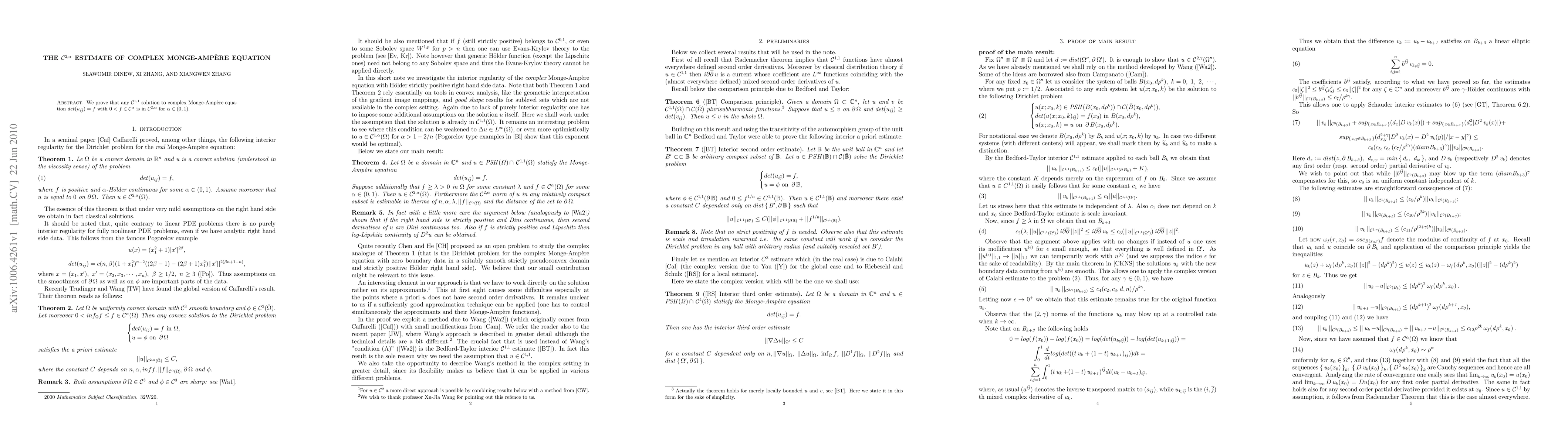 The paper proves that solutions to the complex Monge-Ampere equation with a given η function are in ς²,θ for θ in (0,1), implying they are in C²,θ.