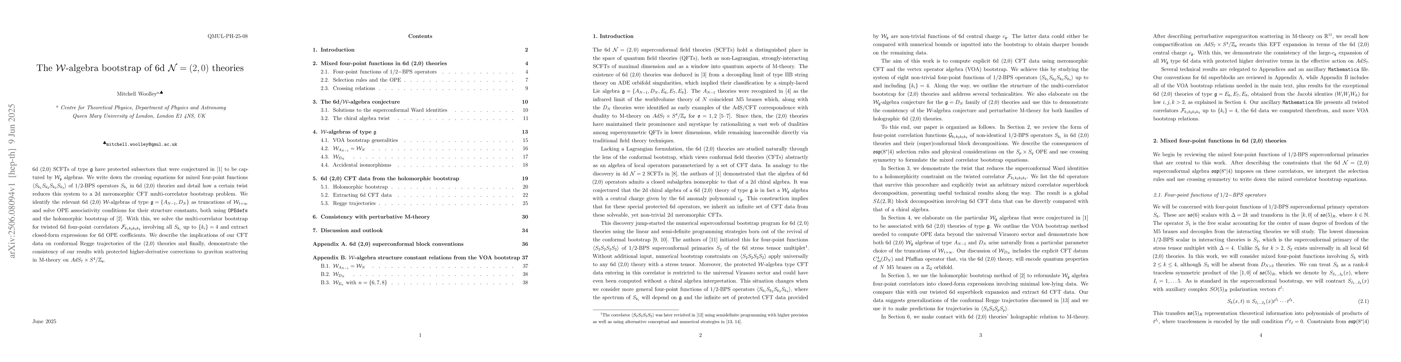 Researchers solved a bootstrap problem for 6d supersymmetric theories using $ extcal{W}$-algebras, finding closed-form expressions for OPE coefficients and implications for conformal Regge trajectories and graviton scattering in M-theory.