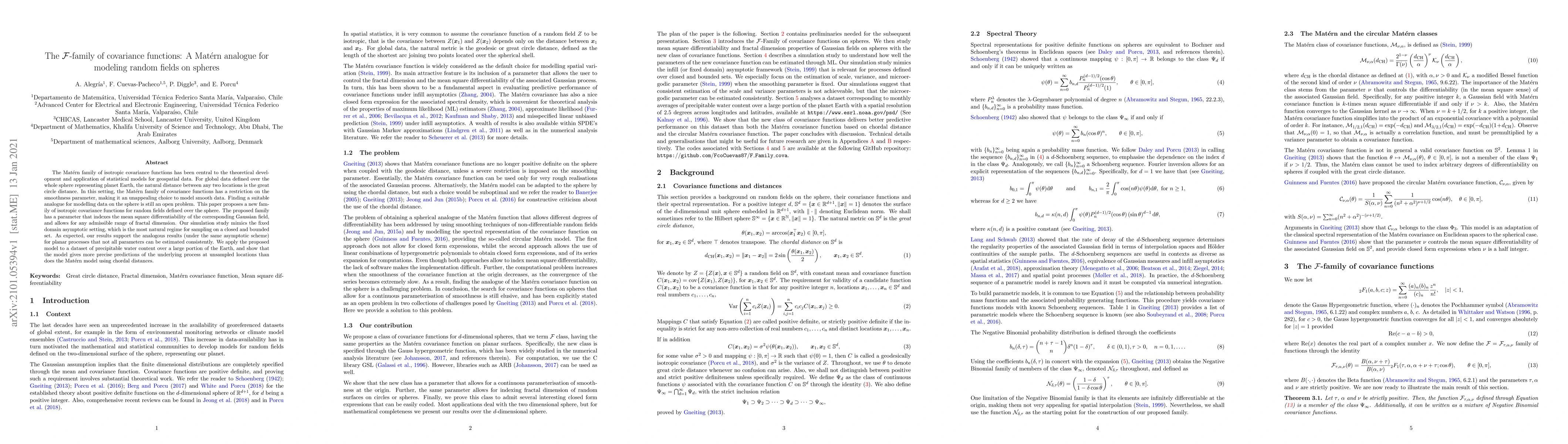 This paper introduces a new family of isotropic covariance functions, termed the $\mathcal{F}$-family, to model smooth random fields on spheres, addressing limitations of the Matérn family for great circle distances. The proposed model allows for any admissible range of fractal dimension and provides more precise predictions than the Matérn model, as demonstrated through simulations and an application to precipitable water content data.
