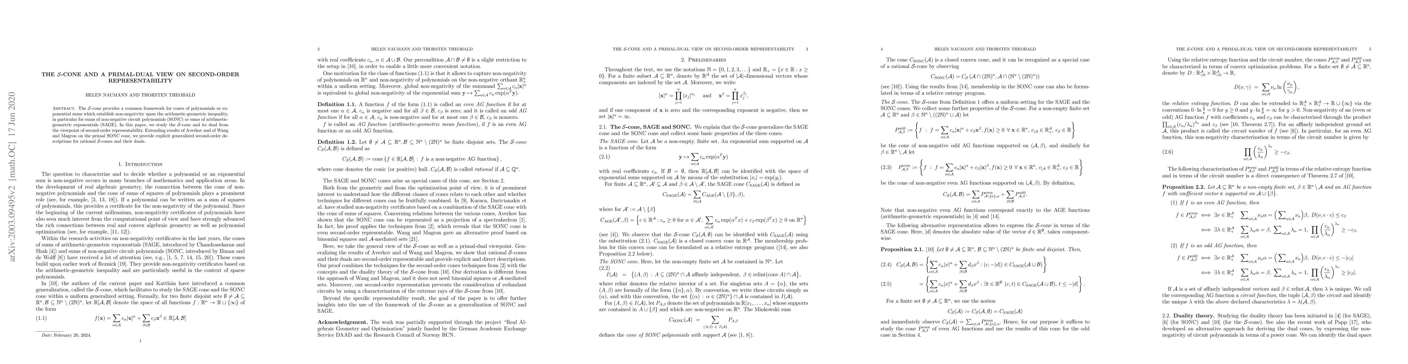 The $\mathcal{S}$-cone provides a common framework for cones of polynomials or exponential sums which establish non-negativity upon the arithmetic-geometric inequality, in particular for sums of non-negative circuit polynomials (SONC) or sums of arithmetic-geometric exponentials (SAGE). In this paper, we study the $\mathcal{S}$-cone and its dual from the viewpoint of second-order representability. Extending results of Averkov and of Wang and Magron on the primal SONC cone, we provide explicit generalized second-order descriptions for rational $\mathcal{S}$-cones and theirs duals.