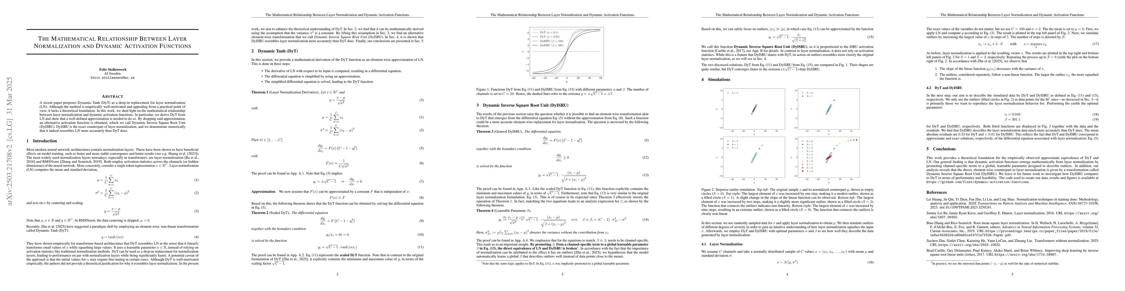 The work reveals the mathematical relationship between Layer Normalization and dynamic activation functions, introducing DyISRU as a novel alternative to DyT, which is based on an approximation.
