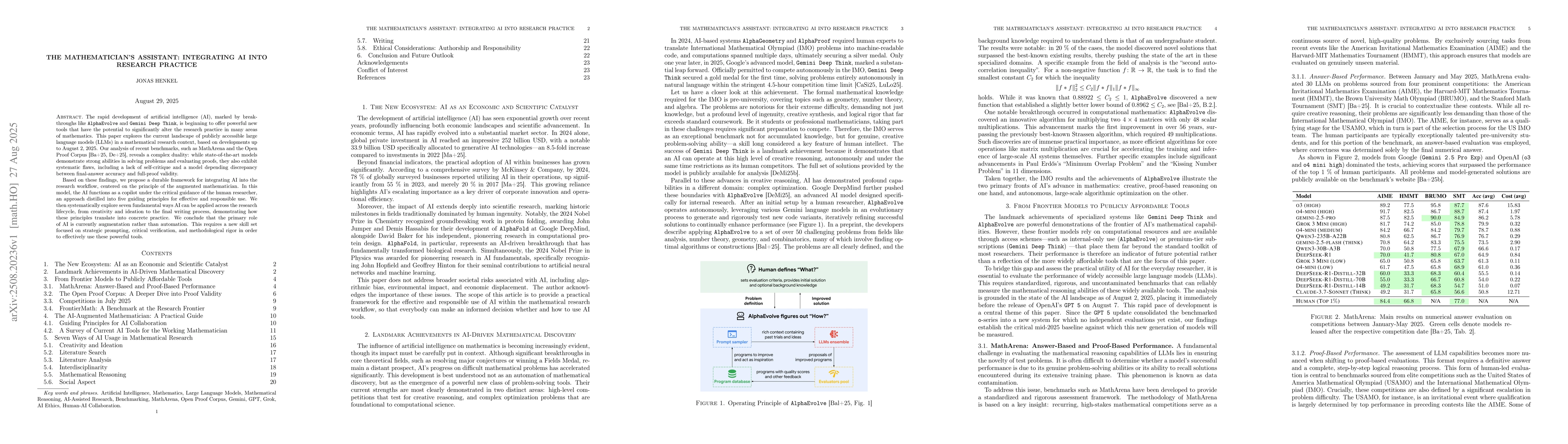 The rapid development of artificial intelligence (AI), marked by breakthroughs like 'AlphaEvolve' and 'Gemini Deep Think', is beginning to offer powerful new tools that have the potential to significantly alter the research practice in many areas of mathematics. This paper explores the current landscape of publicly accessible large language models (LLMs) in a mathematical research context, based on developments up to August 2, 2025. Our analysis of recent benchmarks, such as MathArena and the Open Proof Corpus (Balunovi\'c et al., 2025; Dekoninck et al., 2025), reveals a complex duality: while state-of-the-art models demonstrate strong abilities in solving problems and evaluating proofs, they also exhibit systematic flaws, including a lack of self-critique and a model depending discrepancy between final-answer accuracy and full-proof validity. Based on these findings, we propose a durable framework for integrating AI into the research workflow, centered on the principle of the augmented mathematician. In this model, the AI functions as a copilot under the critical guidance of the human researcher, an approach distilled into five guiding principles for effective and responsible use. We then systematically explore seven fundamental ways AI can be applied across the research lifecycle, from creativity and ideation to the final writing process, demonstrating how these principles translate into concrete practice. We conclude that the primary role of AI is currently augmentation rather than automation. This requires a new skill set focused on strategic prompting, critical verification, and methodological rigor in order to effectively use these powerful tools.