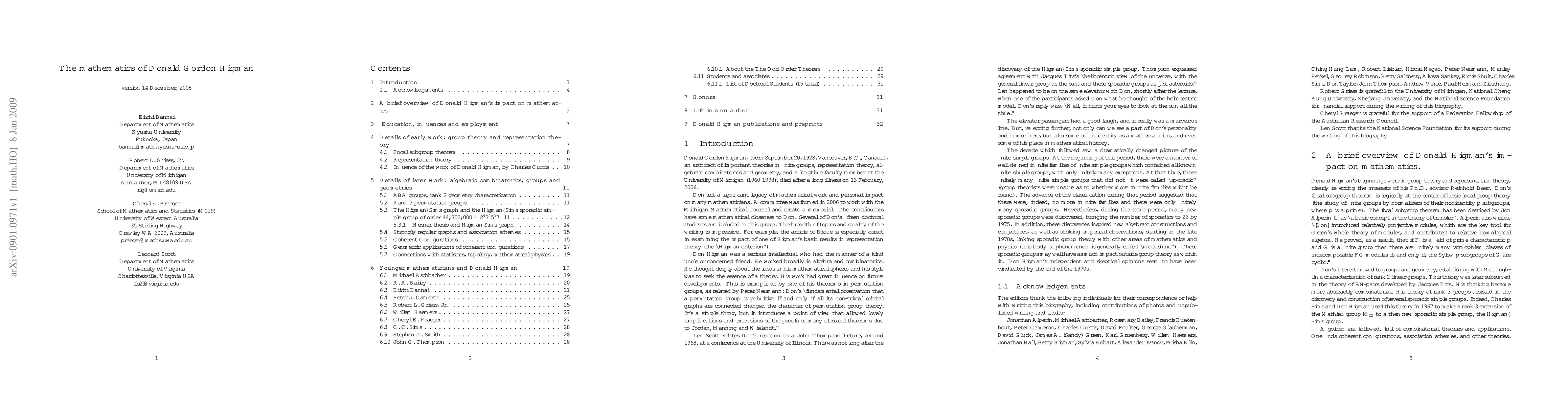 This is about the mathematics and life of Donald Gordon Higman, 1928-2006. He did important work in representation theory of groups and algebras and in algebraic combinatorics. Charles C. Sims and Donald Higman discovered and constructed one of the sporadic simple groups.