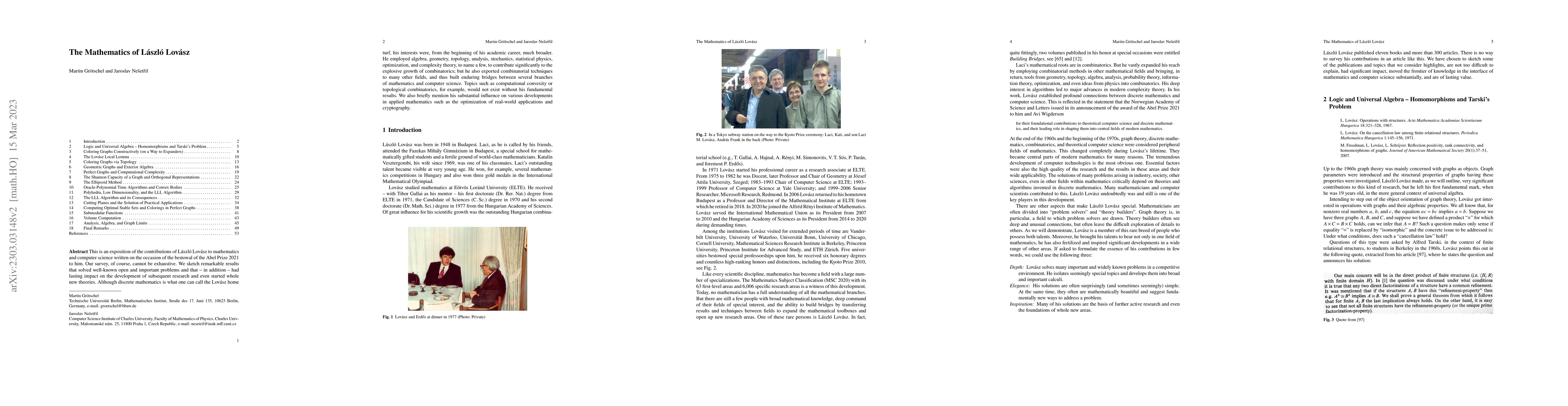 This paper highlights L\'aszl\'o Lov\'asz's significant contributions to mathematics and computer science, particularly his groundbreaking work in combinatorics and its applications to optimization, complexity theory, and applied mathematics. His interdisciplinary approach has fostered lasting impacts and new theories across various fields.