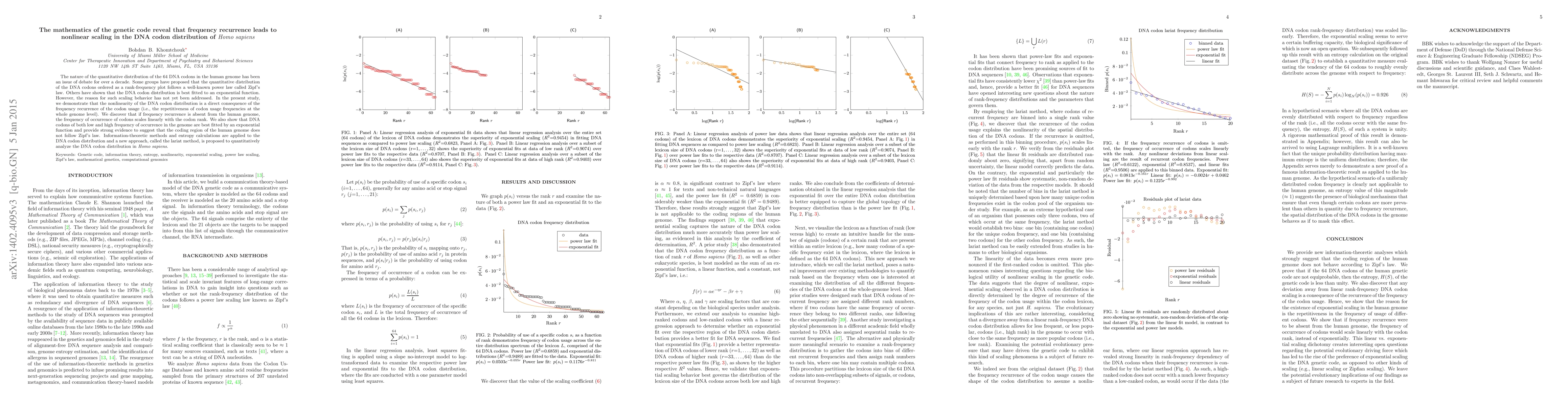 The nature of the quantitative distribution of the 64 DNA codons in the human genome has been an issue of debate for over a decade. Some groups have proposed that the quantitative distribution of the DNA codons ordered as a rank-frequency plot follows a well-known power law called Zipf's law. Others have shown that the DNA codon distribution is best fitted to an exponential function. However, the reason for such scaling behavior has not yet been addressed. In the present study, we demonstrate that the nonlinearity of the DNA codon distribution is a direct consequence of the frequency recurrence of the codon usage (i.e., the repetitiveness of codon usage frequencies at the whole genome level). We discover that if frequency recurrence is absent from the human genome, the frequency of occurrence of codons scales linearly with the codon rank. We also show that DNA codons of both low and high frequency of occurrence in the genome are best fitted by an exponential function and provide strong evidence to suggest that the coding region of the human genome does not follow Zipf's law. Information-theoretic methods and entropy calculations are applied to the DNA codon distribution and a new approach, called the lariat method, is proposed to quantitatively analyze the DNA codon distribution in Homo sapiens.