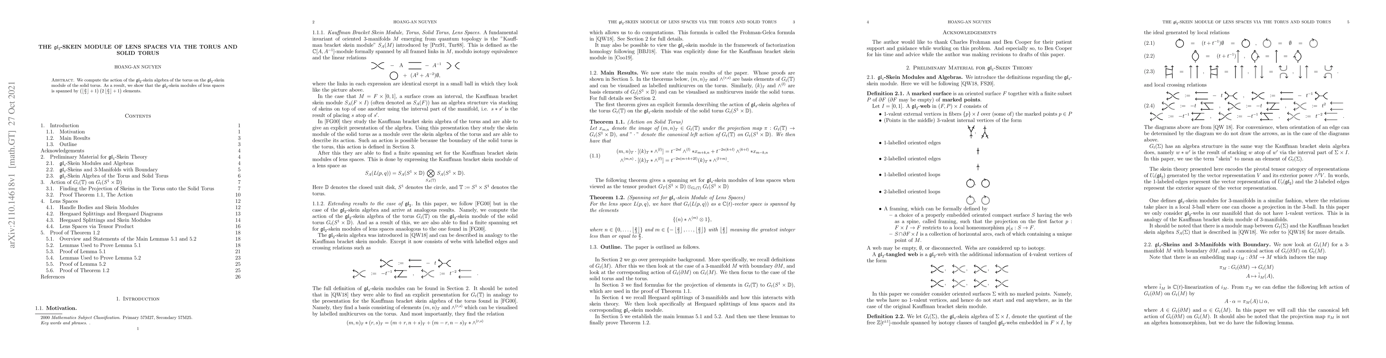 Summary: The study computes the $\mathfrak{gl}_2$-skein algebra action on the $\mathfrak{gl}_2$-skein module of the solid torus through the torus, revealing that $\mathfrak{gl}_2$-skein modules of lens spaces are spanned by specific elements determined by $p$.