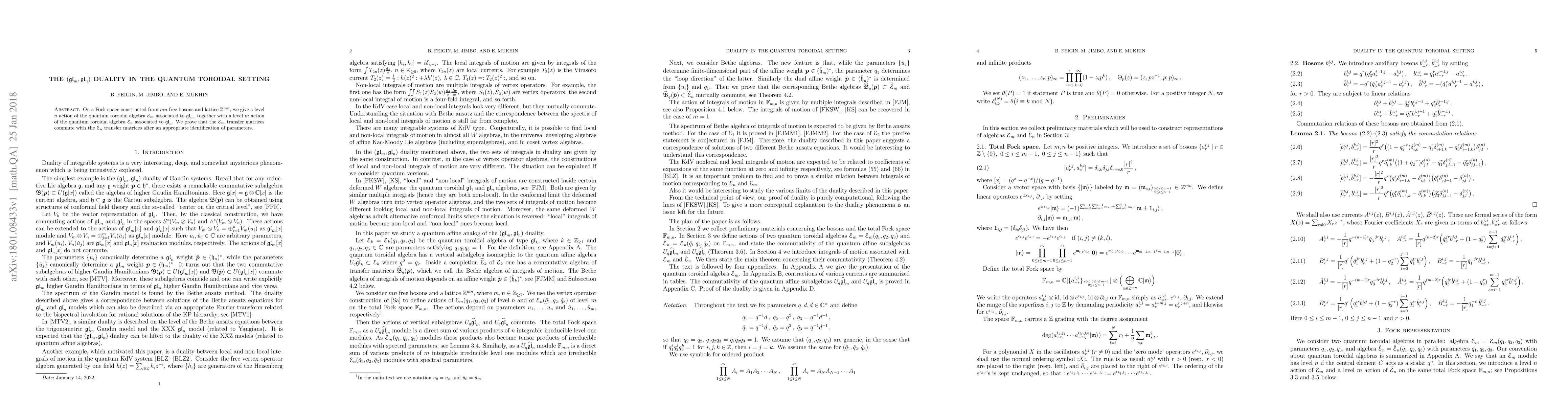 The paper introduces a detailed construction of Fock space and transfer matrices for quantum toroidal algebras $\mathscr {E}_m$ and $\mathscr {E}_n$, along with a proof of their commutation under specific parameter identifications.