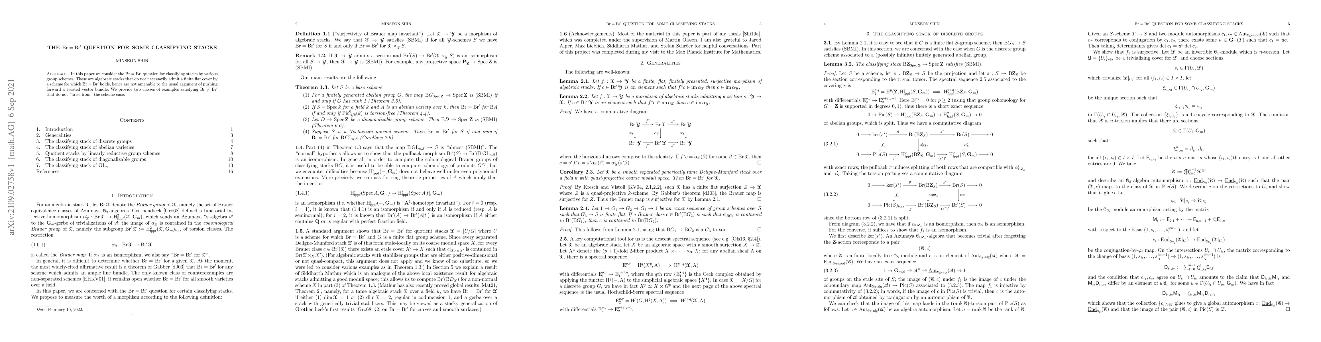 This paper explores the $mathrm{Br} = mathrm{Br}'$ question concerning classifying stacks governed by different group schemes. It presents two new classes of examples where $mathrm{Br} e mathrm{Br}'$, demonstrating that these cases do not stem from the scheme context, thus expanding our understanding beyond usual arguments.