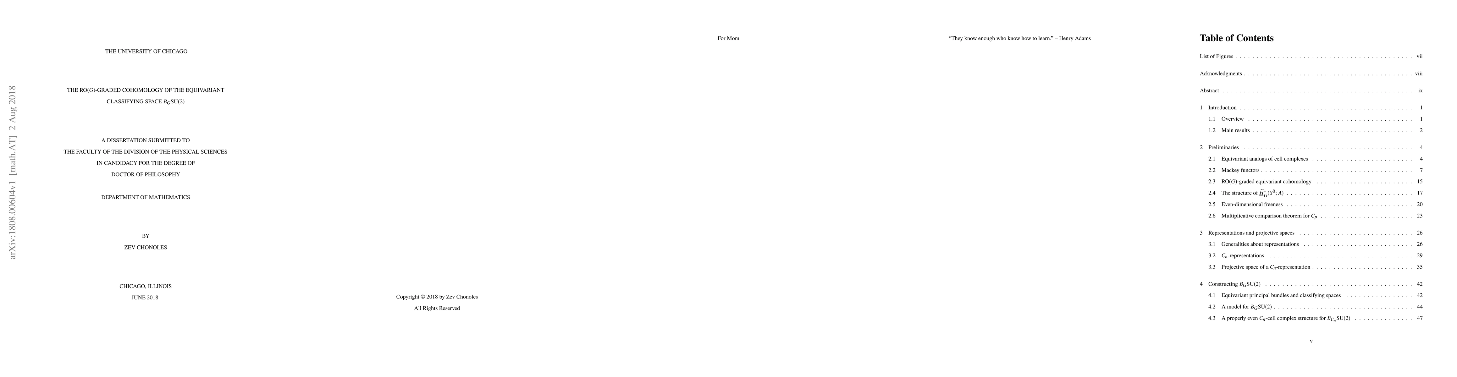 This paper computes the $\mathrm{RO}(C_n)$-graded Bredon equivariant cohomology of $B_{C_n}\mathrm{SU}(2)$ for specific $n$ values, focusing on its additive and multiplicative structures. For $n=2$, it reveals a cohomology algebra generated by two elements with a defined relation, using tools like equivariant "even-dimensional freeness" and "multiplicative comparison" theorems.