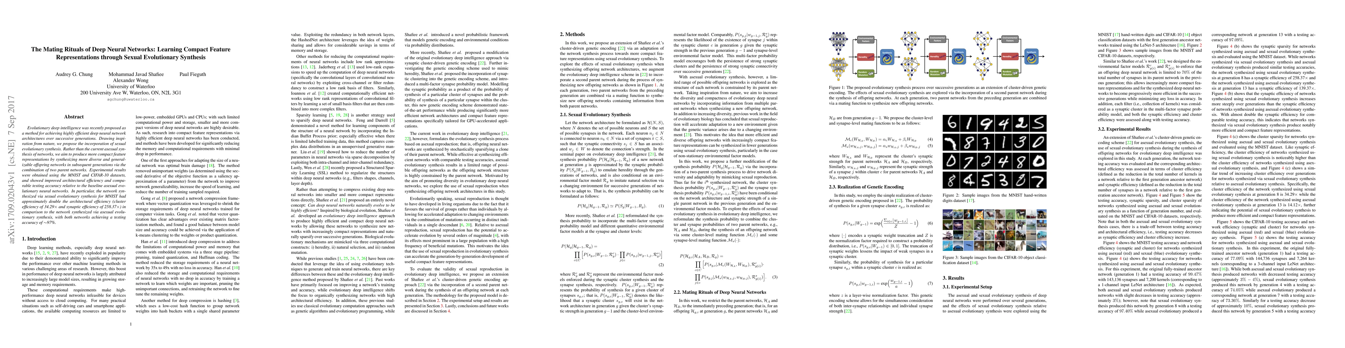 This paper proposes sexual evolutionary synthesis to enhance deep neural networks, achieving more compact and efficient feature representations compared to asexual synthesis. Experiments on MNIST and CIFAR-10 datasets demonstrate improved architectural efficiency with comparable accuracy, showing a significant efficiency boost for MNIST networks.