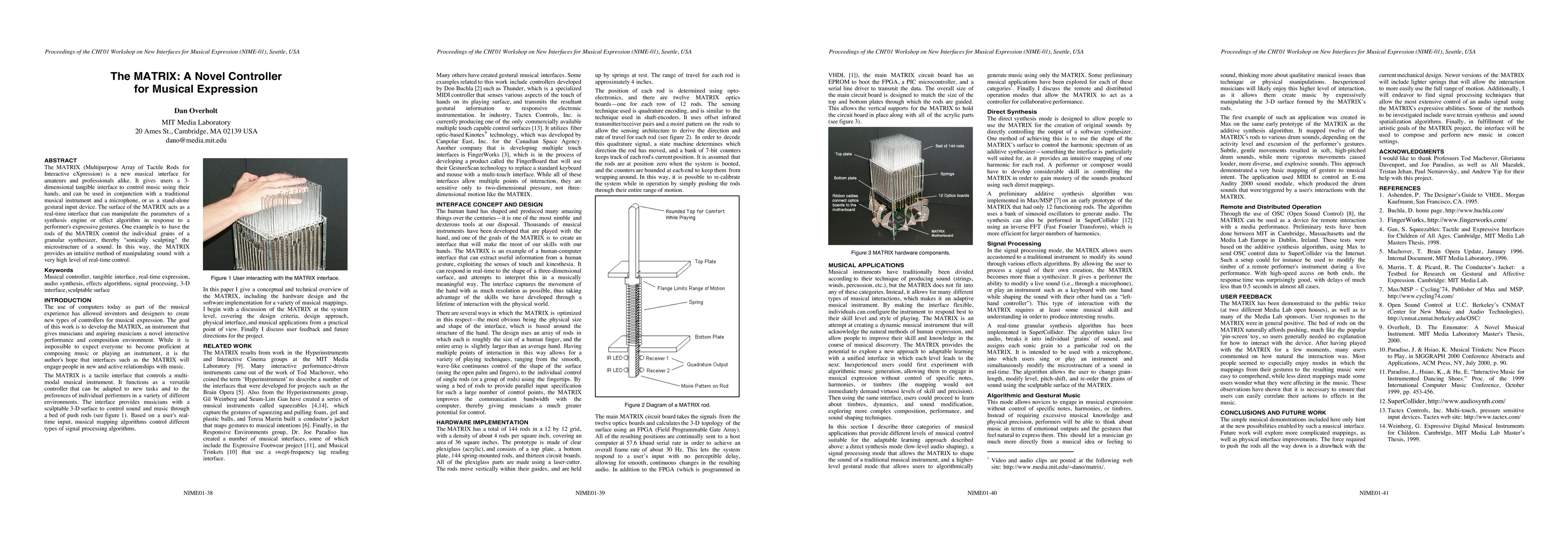 The MATRIX (Multipurpose Array of Tactile Rods for Interactive eXpression) is a new musical interface for amateurs and professionals alike. It gives users a 3- dimensional tangible interface to control music using their hands, and can be used in conjunction with a traditional musical instrument and a microphone, or as a stand-alone gestural input device. The surface of the MATRIX acts as a real-time interface that can manipulate the parameters of a synthesis engine or effect algorithm in response to a performer's expressive gestures. One example is to have the rods of the MATRIX control the individual grains of a granular synthesizer, thereby "sonically sculpting" the microstructure of a sound. In this way, the MATRIX provides an intuitive method of manip