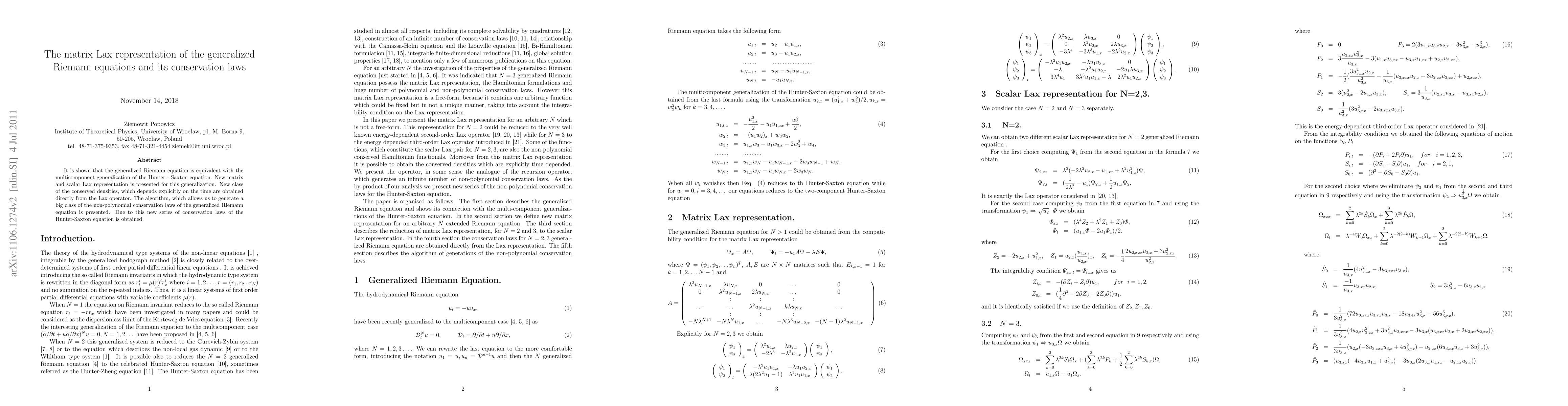 This paper presents a matrix Lax representation for the generalized Riemann equation, showing its equivalence to the multicomponent Hunter-Saxton equation. It introduces new conserved densities and an algorithm to generate a broad class of non-polynomial conservation laws, leading to a new series of conservation laws for the Hunter-Saxton equation.