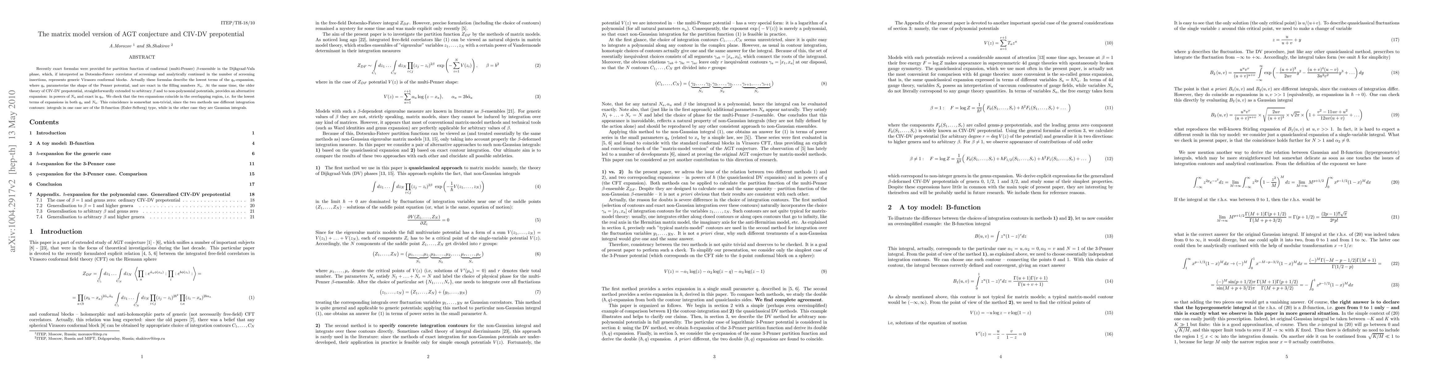 This research paper establishes a connection between two matrix models, the AGT conjecture, and the CIV-DV prepotential. It confirms that the lowest terms of their respective expansions, q_a and N_a, match despite using different integration contours. This finding bridges B-function (Euler-Selberg) integrals with Gaussian integrals.