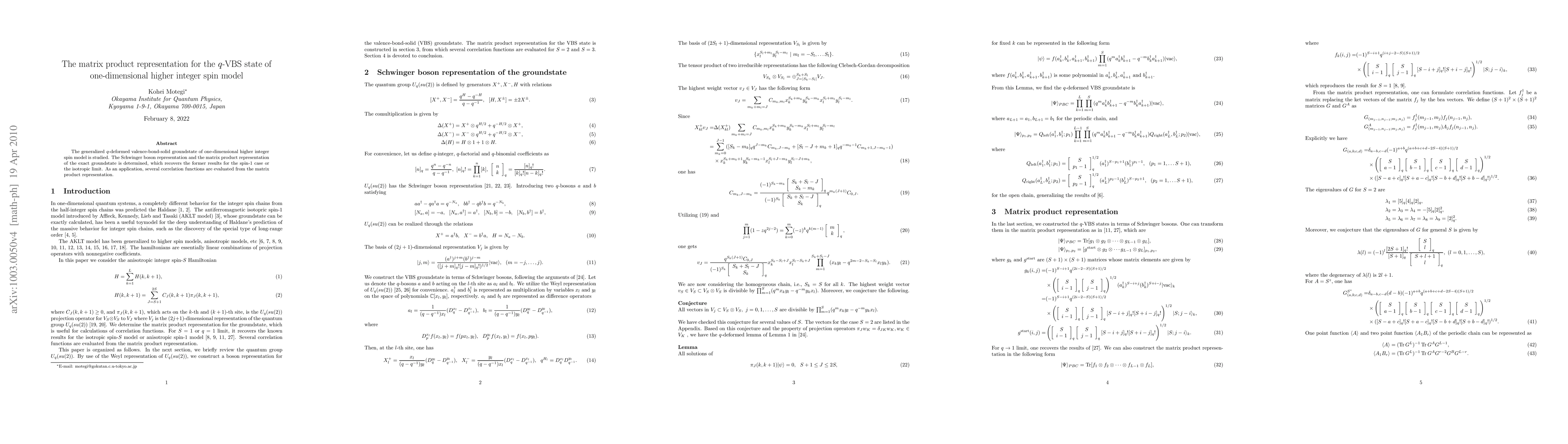 The generalized q-deformed valence-bond-solid groundstate of one-dimensional higher integer spin model is studied. The Schwinger boson representation and the matrix product representation of the exact groundstate is determined, which recovers the former results for the spin-1 case or the isotropic limit. As an application, several correlation functions are evaluated from the matrix product representation.