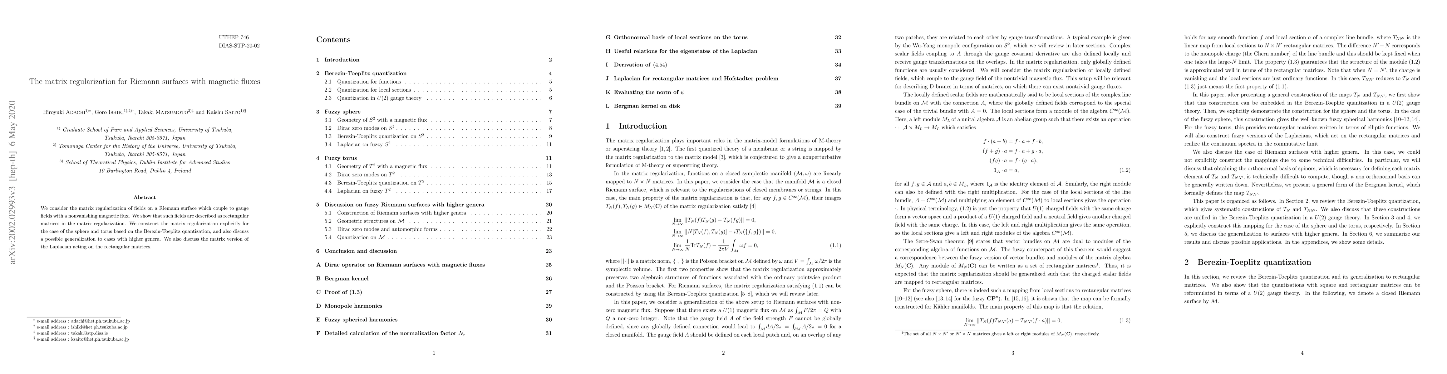 This paper presents a matrix regularization method for fields on Riemann surfaces with magnetic fluxes, demonstrating that these fields can be described as rectangular matrices. The authors construct this regularization explicitly for the sphere and torus, and propose a generalization for higher genus cases. They also explore the matrix form of the Laplacian acting on these matrices.