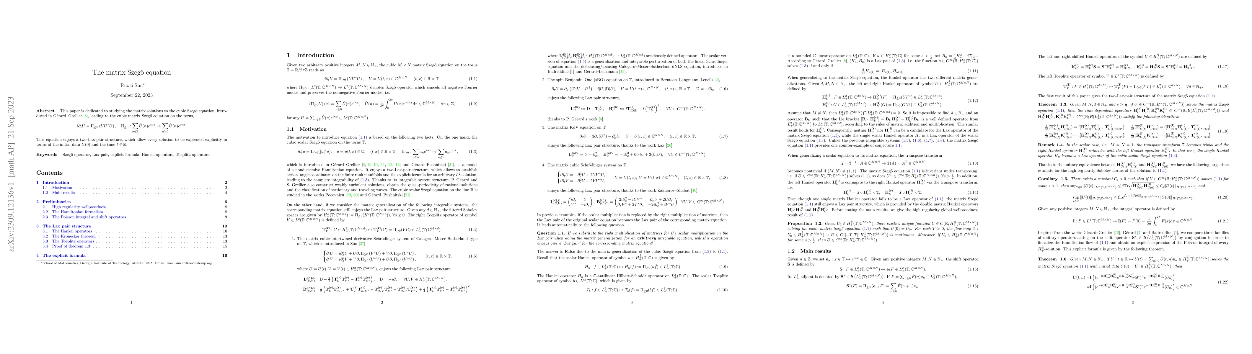 This paper investigates matrix solutions to the cubic Szeg\H{o} equation on the torus, revealing a two-Lax-pair structure that allows explicit expression of solutions in terms of initial data and time.