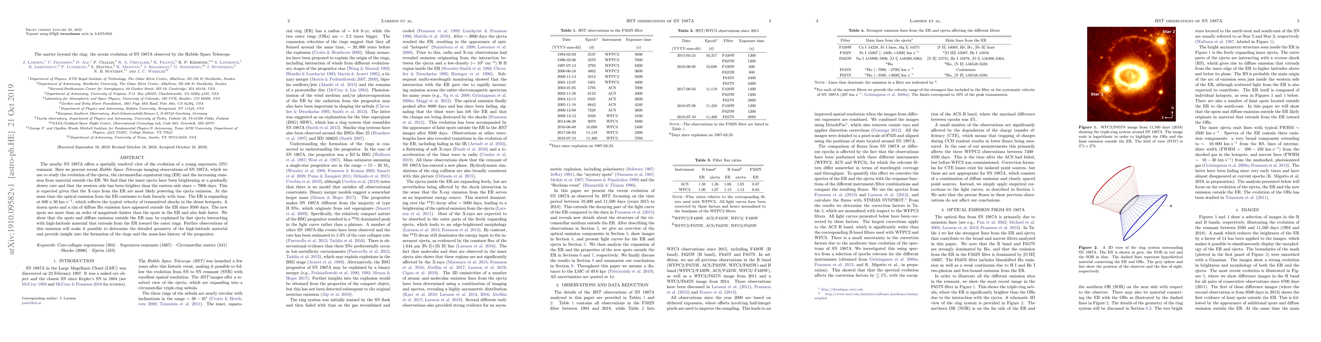 The Hubble Space Telescope has observed recent evolution of SN 1987A, revealing that its inner ejecta have been brightening at a slower rate, with new spots appearing outside the equatorial ring due to fast ejecta interacting with high-latitude material.