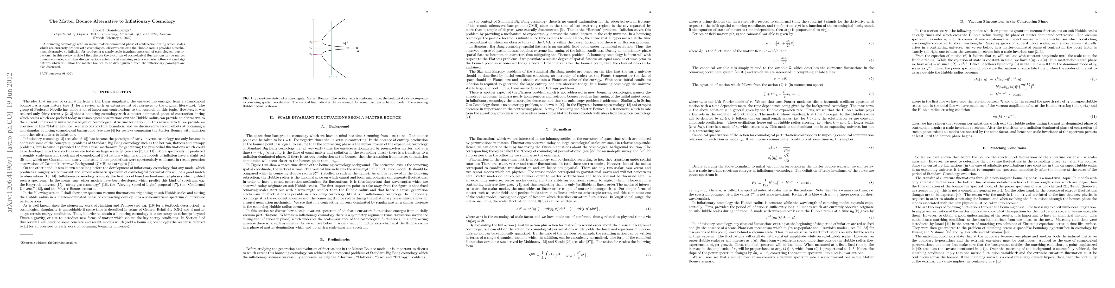 A bouncing cosmology with an initial matter-dominated phase of contraction during which scales which are currently probed with cosmological observations exit the Hubble radius provides a mechanism alternative to inflation for producing a nearly scale-invariant spectrum of cosmological perturbations. In this review article I first discuss the evolution of cosmological fluctuations in the matter bounce scenario, and then discuss various attempts at realizing such a scenario. Observational signatures which will allow the matter bounce to be distinguished from the inflationary paradigm are also discussed.