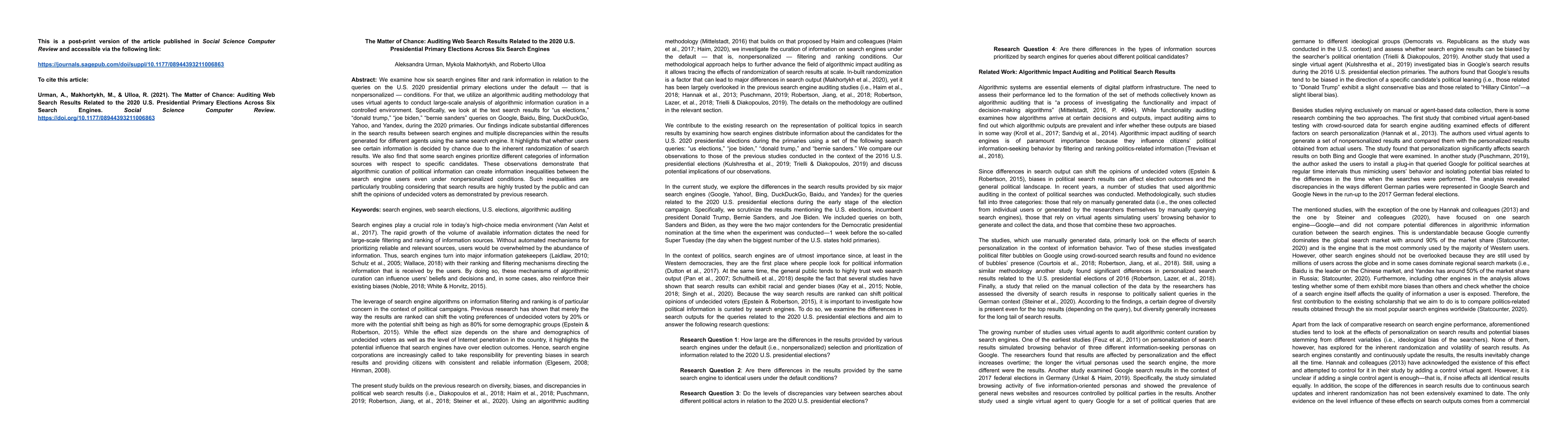 Roberto Ulloa, Aleksandra Urman, Juhi Kulshrestha et al.