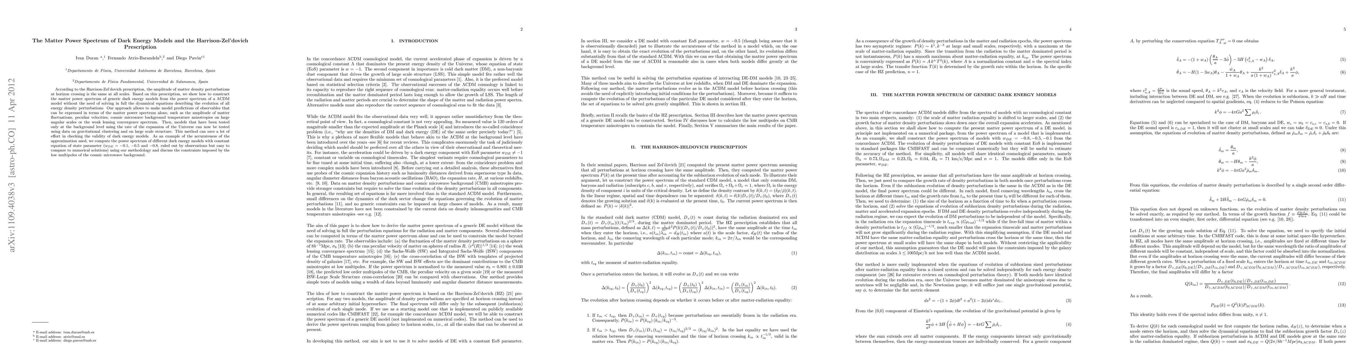 According to the Harrison-Zel'dovich prescription, the amplitude of matter density perturbations at horizon crossing is the same at all scales. Based on this prescription, we show how to construct the matter power spectrum of generic dark energy models from the power spectrum of a $\Lambda$CDM model without the need of solving in full the dynamical equations describing the evolution of all energy density perturbations. Our approach allows to make model predictions of observables that can be expressed in terms of the matter power spectrum alone, such as the amplitude of matter fluctuations, peculiar velocities, cosmic microwave background temperature anisotropies on large angular scales or the weak lensing convergence spectrum. Then, models that have been tested only at the background level using the rate of the expansion of the Universe can now be tested using data on gravitational clustering and on large scale structure. This method can save a lot of effort in checking the validity of dark energy models. As an example of the accurateness of the approximation used, we compute the power spectrum of different dark energy models with constant equation of state parameter ($w_{DE}=-0.1$, -0.5 and -0.8, ruled out by observations but easy to compare to numerical solutions) using our methodology and discuss the constraints imposed by the low multipoles of the cosmic microwave background.