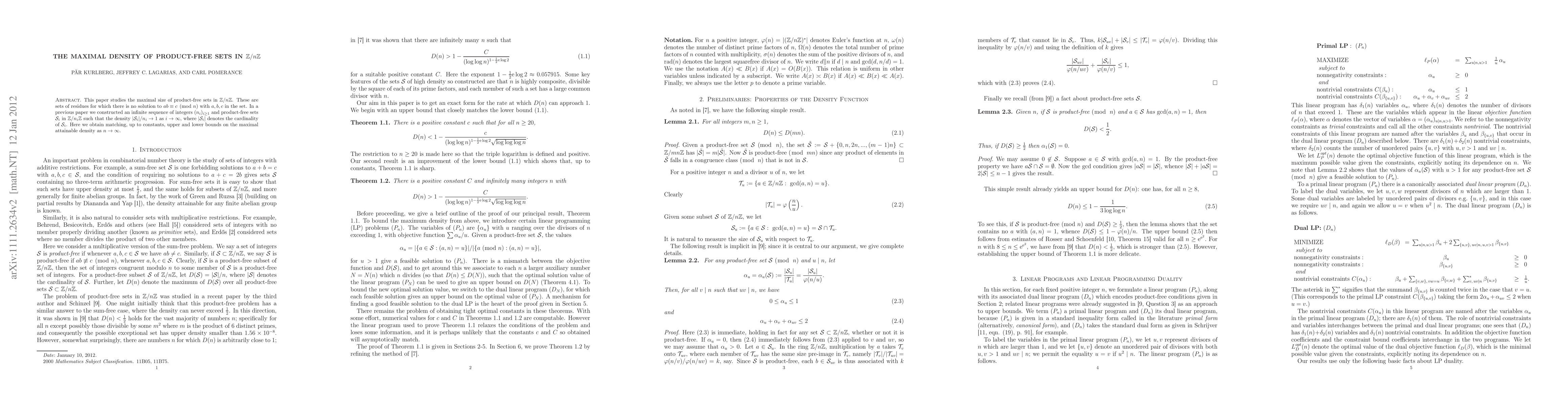This paper investigates the maximal size of product-free sets in Z/nZ, finding sets where no element products are congruent modulo n. It establishes upper and lower bounds, matching up to constants, for the maximal attainable density as n approaches infinity.