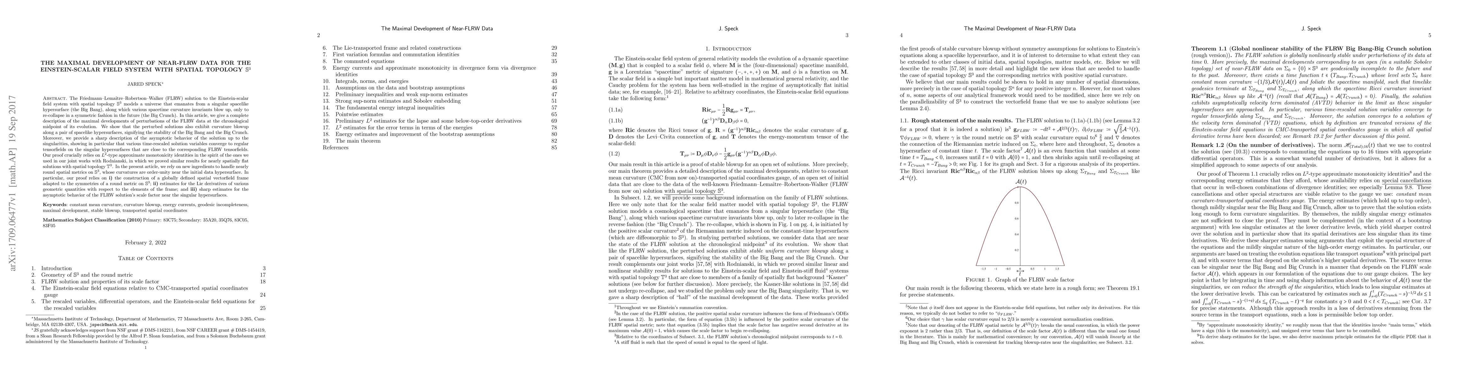 This paper explores the maximal development of perturbed FLRW solutions in the Einstein-scalar field system with spatial topology $\mathbb{S}^3$, demonstrating that these perturbations also exhibit curvature blowups at the Big Bang and Big Crunch. The proof utilizes new techniques to handle nearly round spatial metrics, including a globally defined vectorfield frame and sharp estimates for the FLRW scale factor near singularities.