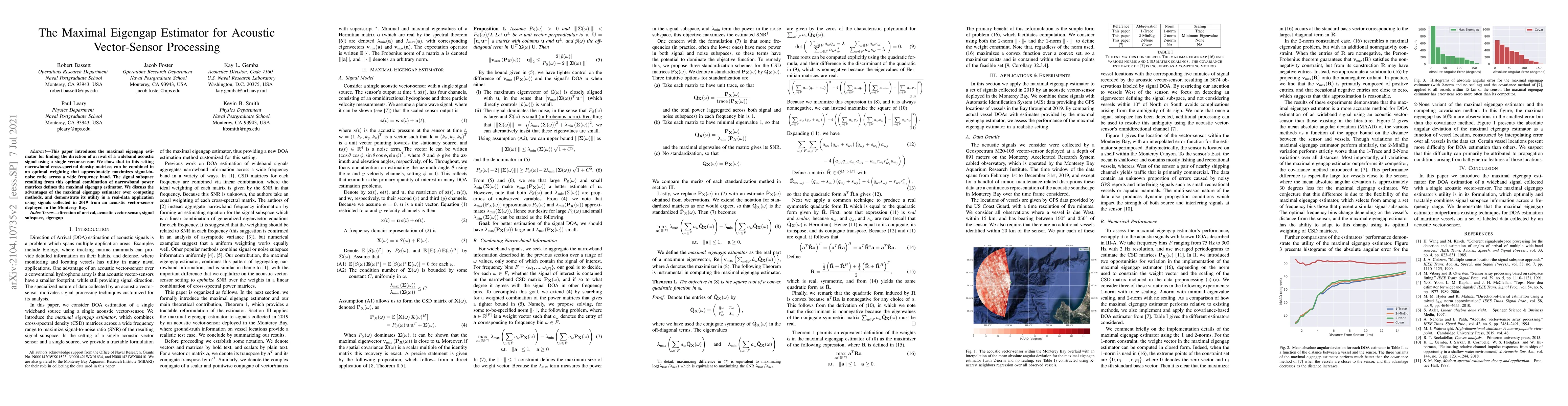 This paper introduces the maximal eigengap estimator for finding the direction of arrival of a wideband acoustic signal using a single vector-sensor. We show that in this setting narrowband cross-spectral density matrices can be combined in an optimal weighting that approximately maximizes signal-to-noise ratio across a wide frequency band. The signal subspace resulting from this optimal combination of narrowband power matrices defines the maximal eigengap estimator. We discuss the advantages of the maximal eigengap estimator over competing methods, and demonstrate its utility in a real-data application using signals collected in 2019 from an acoustic vector-sensor deployed in the Monterey Bay.