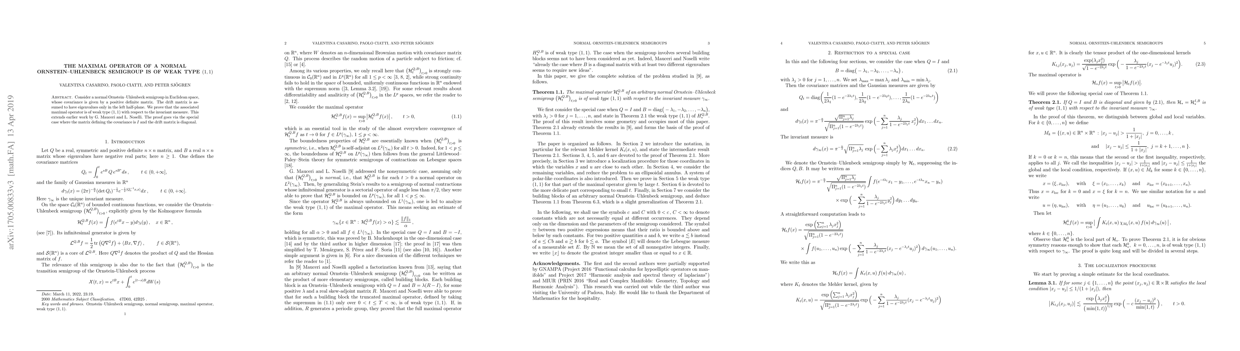 This paper proves that the maximal operator of a normal Ornstein-Uhlenbeck semigroup in $\Bbb{R}^n$ is of weak type $(1,1)$ concerning the invariant measure, extending previous results by Mauceri and Noselli. The proof leverages a simplified case with diagonal drift and identity covariance matrices.