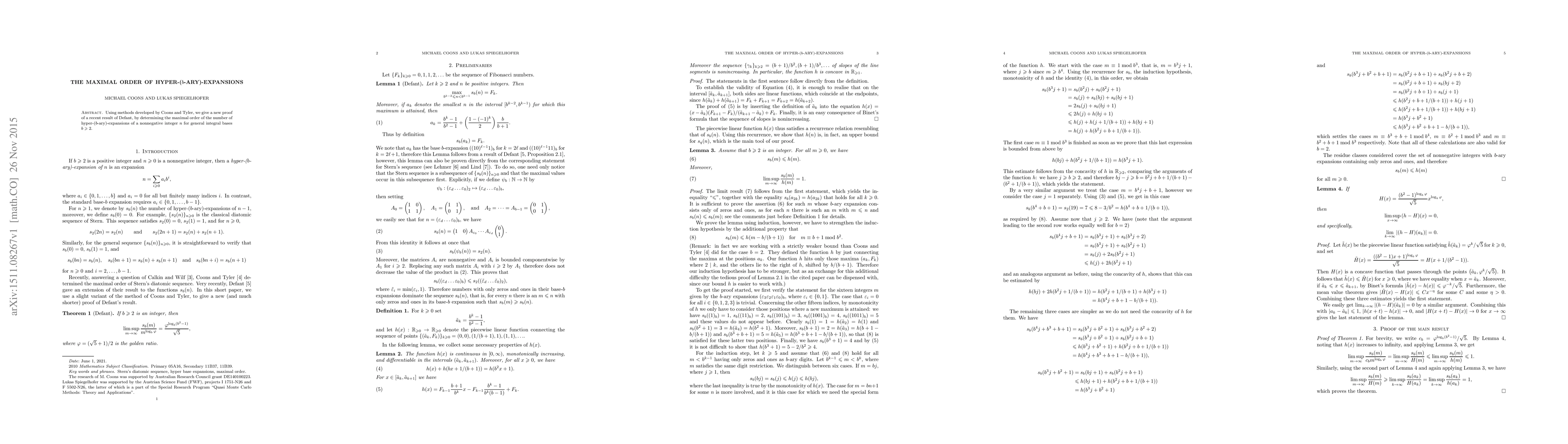 This research paper proves a recent result on hyper-$b$-ary-expansions, determining their maximal order for nonnegative integers $n$ with integral bases $b eq 0$. The findings provide new insights into the structure of these expansions.