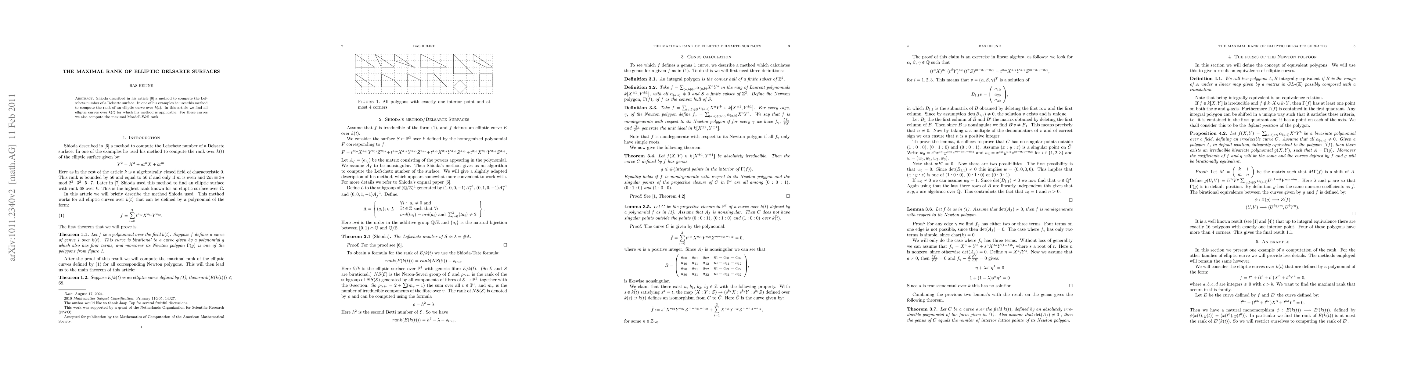 Shioda described in his article from 1986 a method to compute the Lefschetz number of a Delsarte surface. In one of his examples he uses this method to compute the rank of an elliptic curve over k(t). In this article we find all elliptic curves over k(t) for which his method is applicable. For each of these curves we also compute the Mordell-Weil rank.