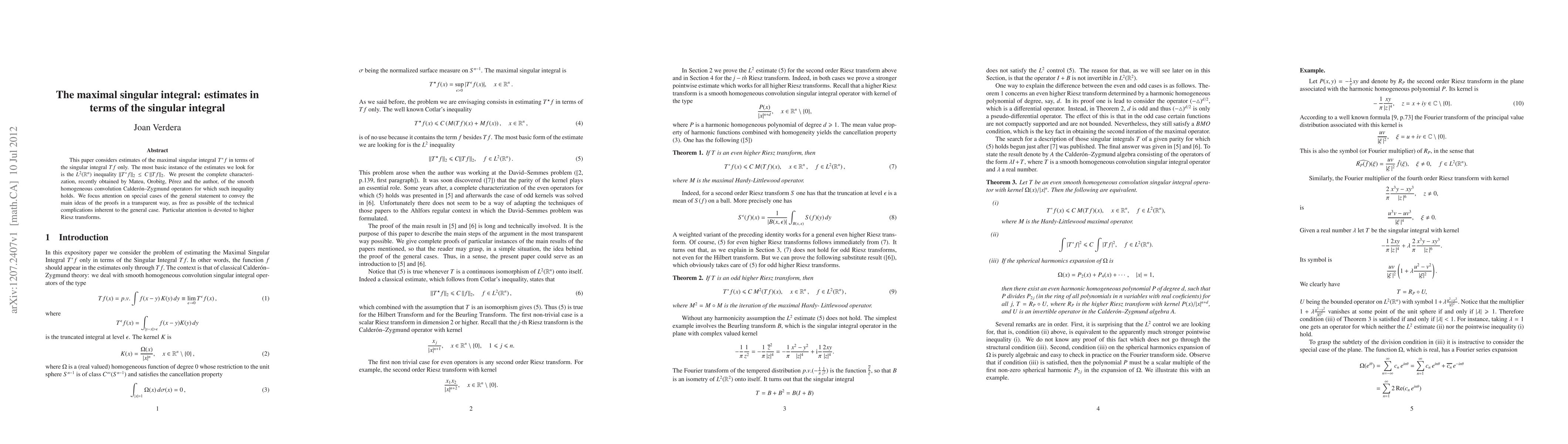 This is an expository paper on the characterization of the even (or odd) smooth homogeneous convolution Calder\'on-Zygmund operators in R^n such that the maximal singular integral can be controlled in the L^2 norm by the singular integral. We focuss attention on special cases of the general statements to convey the main ideas of the proofs in a transparent way, as free as possible of the technical complications inherent to the general case. Particular attention is devoted to higher Riesz transforms. The exposition is based on two papers by J.Mateu, J.Orobitg, C.P\'erez and J.Verdera published in 2010 and 2011.