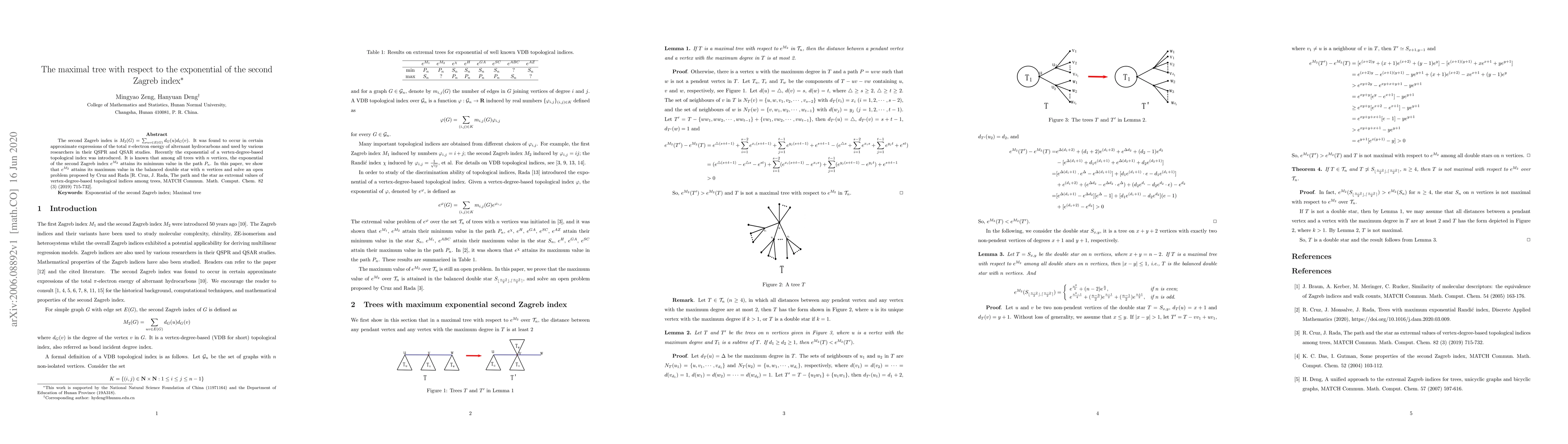 The second Zagreb index is $M_2(G)=\sum_{uv\in E(G)}d_{G}(u)d_{G}(v)$. It was found to occur in certain approximate expressions of the total $\pi$-electron energy of alternant hydrocarbons and used by various researchers in their QSPR and QSAR studies. Recently the exponential of a vertex-degree-based topological index was introduced. It is known that among all trees with $n$ vertices, the exponential of the second Zagreb index $e^{M_2}$ attains its minimum value in the path $P_n$. In this paper, we show that $e^{M_2}$ attains its maximum value in the balanced double star with $n$ vertices and solve an open problem proposed by Cruz and Rada [R. Cruz, J. Rada, The path and the star as extremal values of vertex-degree-based topological indices among trees, MATCH Commun. Math. Comput. Chem. 82 (3) (2019) 715-732].