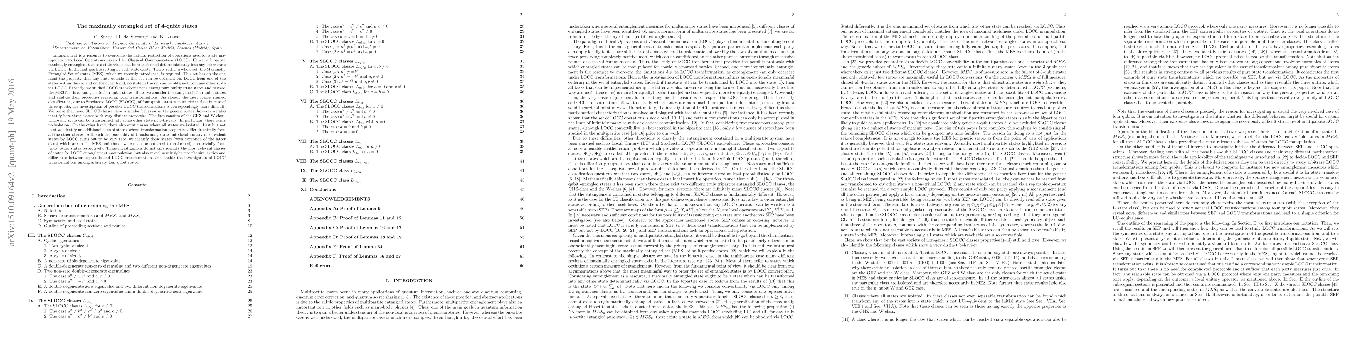This paper investigates the Maximally Entangled Set (MES) of non-generic 4-qubit states, revealing that most SLOCC classes behave similarly to generic 4-qubit states, while identifying distinct classes, including GHZ and W states, isolated states, and a unique class with drastically different transformation properties.