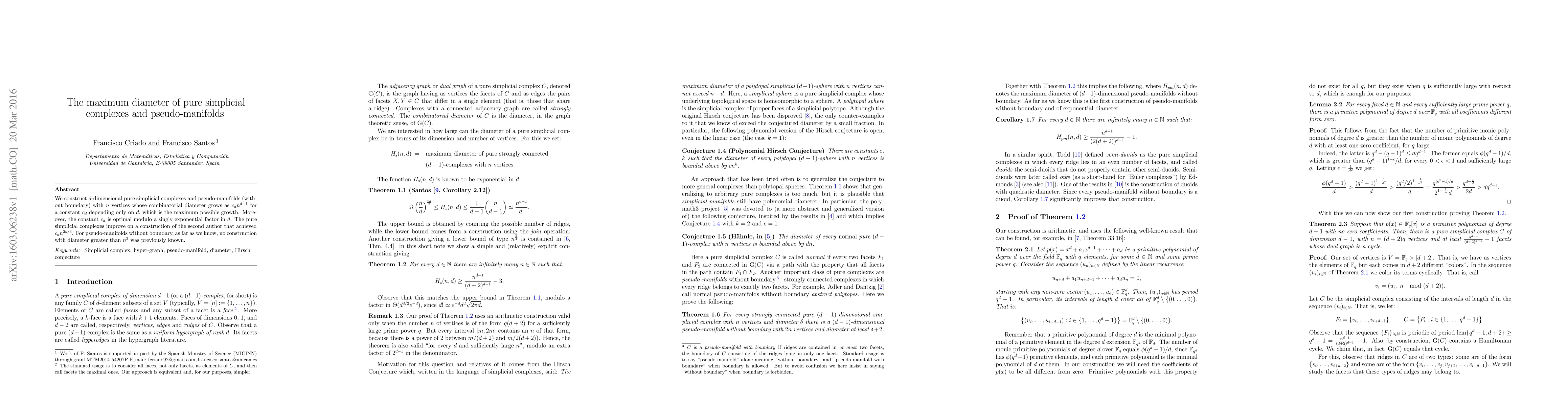 This paper constructs $d$-dimensional pure simplicial complexes and pseudo-manifolds with diameter growing as $c_d n^{d-1}$, achieving the maximum possible growth rate. The construction improves upon previous results and, for pseudo-manifolds, surpasses the previously known diameter of $n^2$.