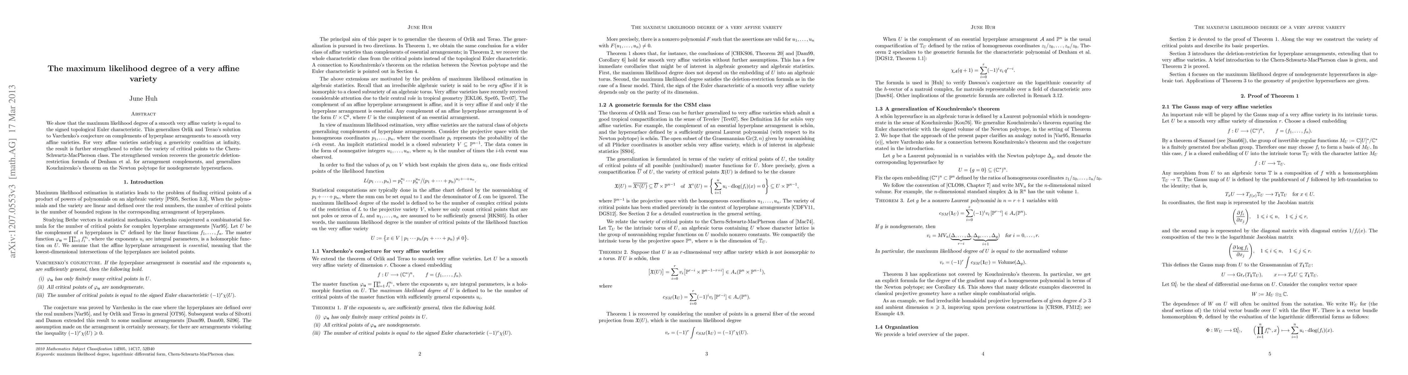 This paper demonstrates that the maximum likelihood degree of a smooth very affine variety equals its signed topological Euler characteristic, extending Orlik and Terao's solution to Varchenko's conjecture. For varieties meeting a genericity condition at infinity, the result connects the variety of critical points to the Chern-Schwartz-MacPherson class, generalizing Kouchnirenko's theorem.