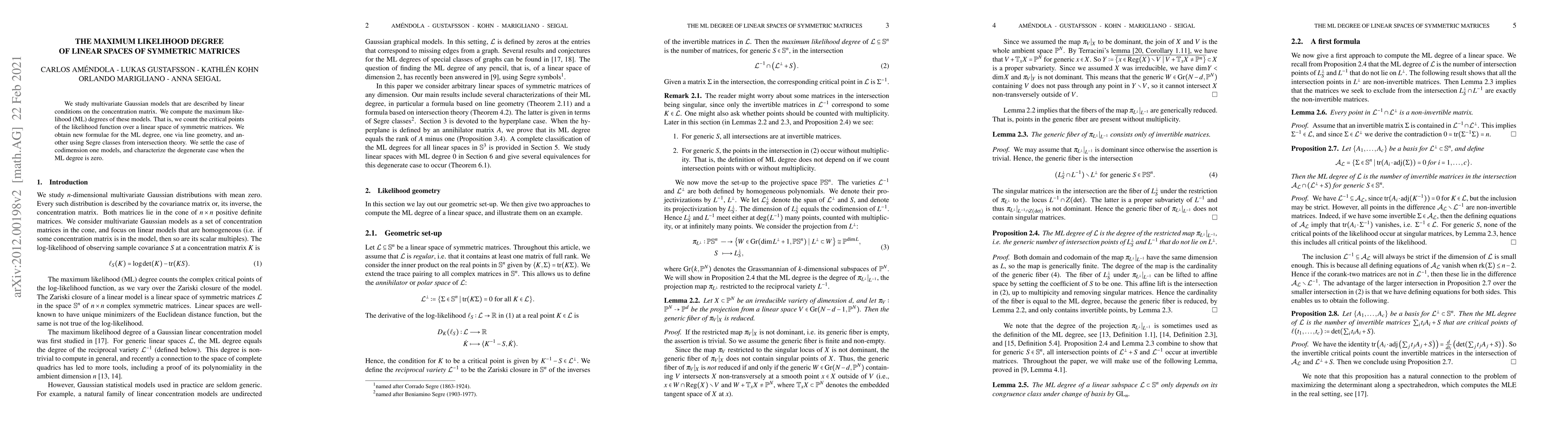 We study multivariate Gaussian models that are described by linear conditions on the concentration matrix. We compute the maximum likelihood (ML) degrees of these models. That is, we count the critical points of the likelihood function over a linear space of symmetric matrices. We obtain new formulae for the ML degree, one via Schubert calculus, and another using Segre classes from intersection theory. We settle the case of codimension one models, and characterize the degenerate case when the ML degree is zero.