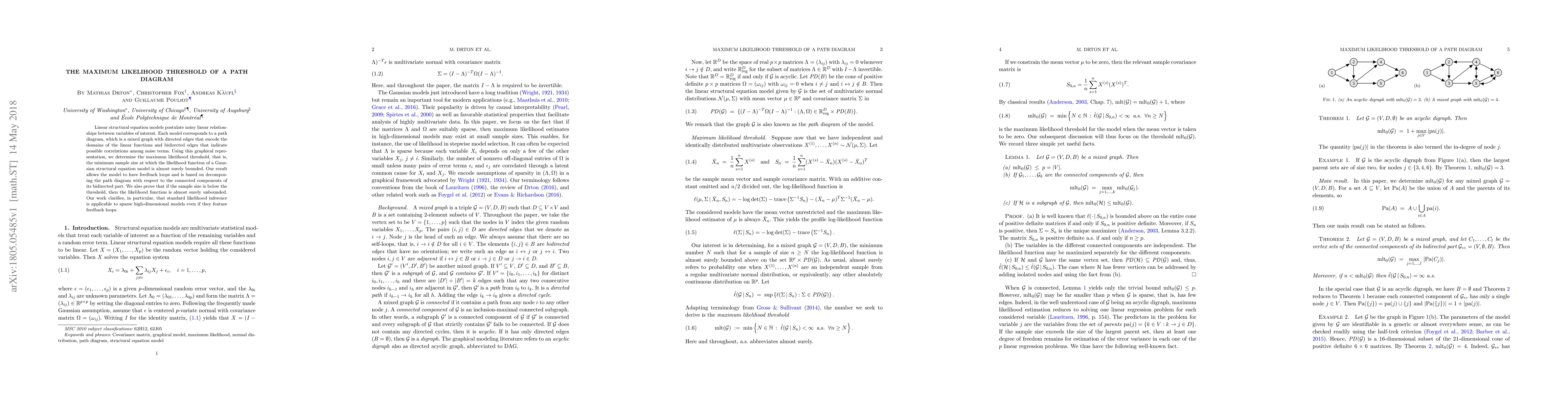 This paper determines the maximum likelihood threshold for Gaussian structural equation models represented by path diagrams, showing that the likelihood function is almost surely bounded when the sample size exceeds this threshold. It also proves that below this threshold, the likelihood function is almost surely unbounded, clarifying the applicability of standard inference methods to sparse high-dimensional models with feedback loops.