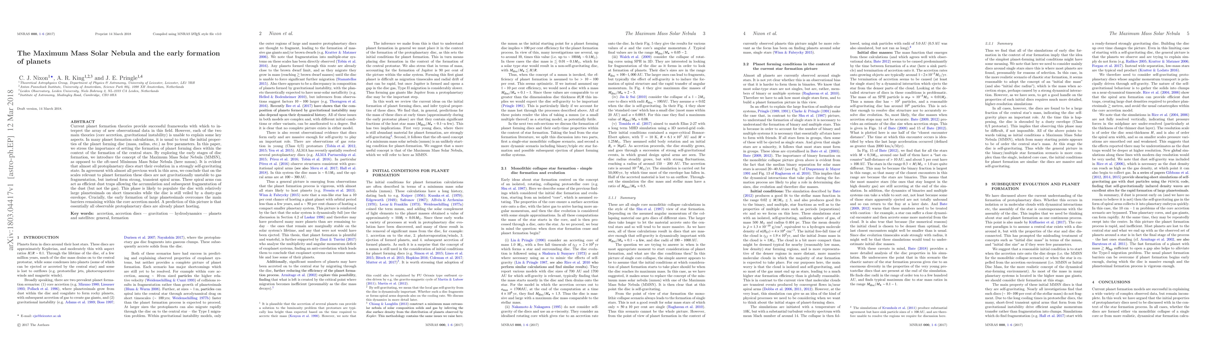Current planet formation theories provide successful frameworks with which to interpret the array of new observational data in this field. However, each of the two main theories (core accretion, gravitational instability) is unable to explain some key aspects. In many planet formation calculations, it is usual to treat the initial properties of the planet forming disc (mass, radius, etc.) as free parameters. In this paper, we stress the importance of setting the formation of planet forming discs within the context of the formation of the central stars. By exploring the early stages of disc formation, we introduce the concept of the Maximum Mass Solar Nebula (MMSN), as opposed to the oft-used Minimum Mass Solar Nebula (here mmsn). It is evident that almost all protoplanetary discs start their evolution in a strongly self-gravitating state. In agreement with almost all previous work in this area, we conclude that on the scales relevant to planet formation these discs are not gravitationally unstable to gas fragmentation, but instead form strong, transient spiral arms. These spiral arms can act as efficient dust traps allowing the accumulation and subsequent fragmentation of the dust (but not the gas). This phase is likely to populate the disc with relatively large planetesimals on short timescales while the disc is still veiled by a dusty-gas envelope. Crucially, the early formation of large planetesimals overcomes the main barriers remaining within the core accretion model. A prediction of this picture is that essentially all observable protoplanetary discs are already planet hosting.