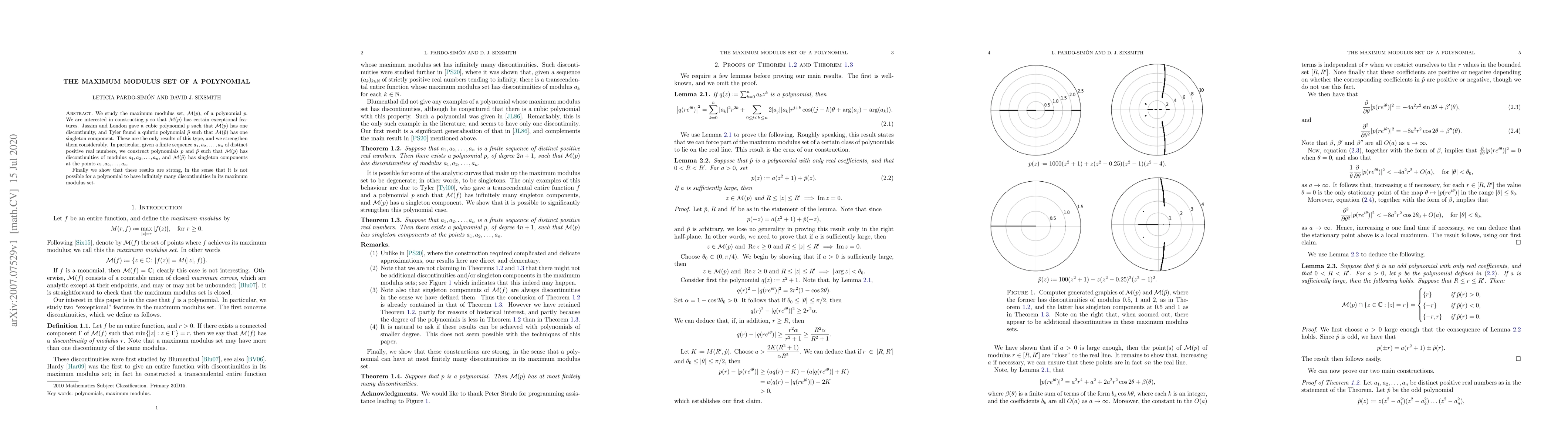 This paper constructs polynomials with specific exceptional features in their maximum modulus sets, including discontinuities and singleton components at given points. It strengthens prior results by constructing polynomials with prescribed moduli for discontinuities and singletons, and proves that no polynomial can have infinitely many discontinuities in its maximum modulus set.