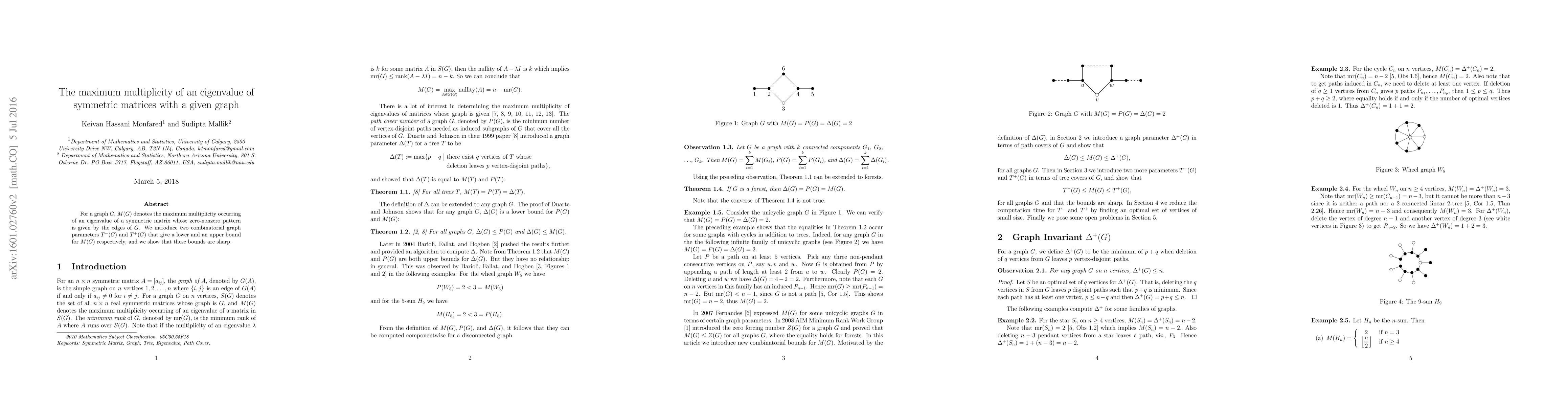 For a graph G, M(G) denotes the maximum multiplicity occurring of an eigenvalue of a symmetric matrix whose zero-nonzero pattern is given by edges of G. We introduce two combinatorial graph parameters T^-(G) and T^+(G) that give a lower and an upper bound for M(G) respectively, and we show that these bounds are sharp.